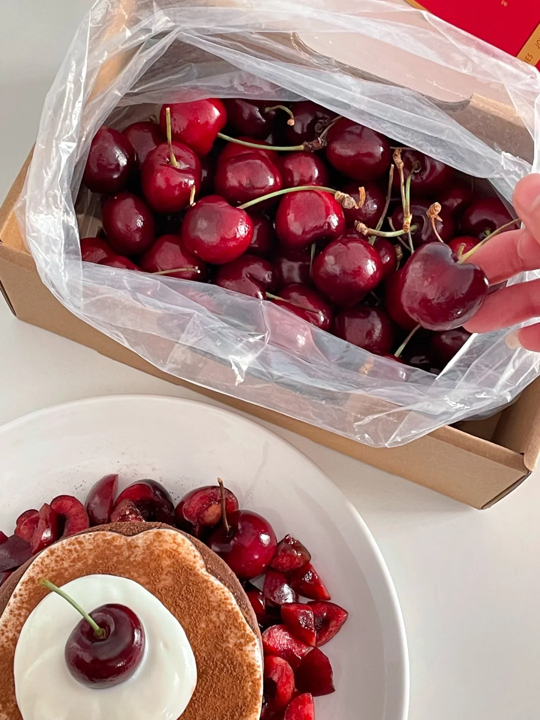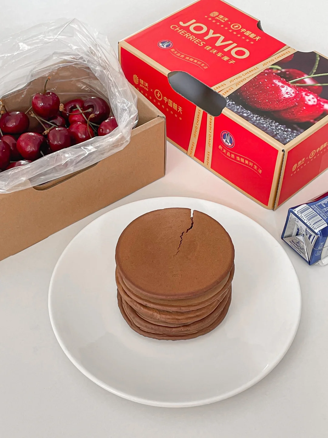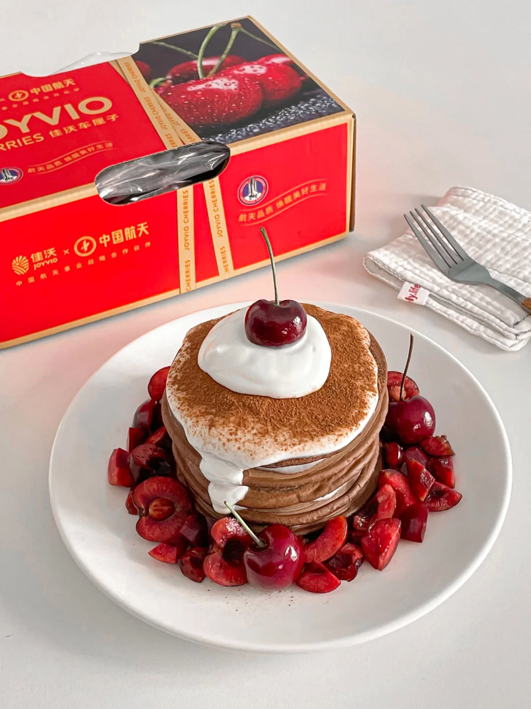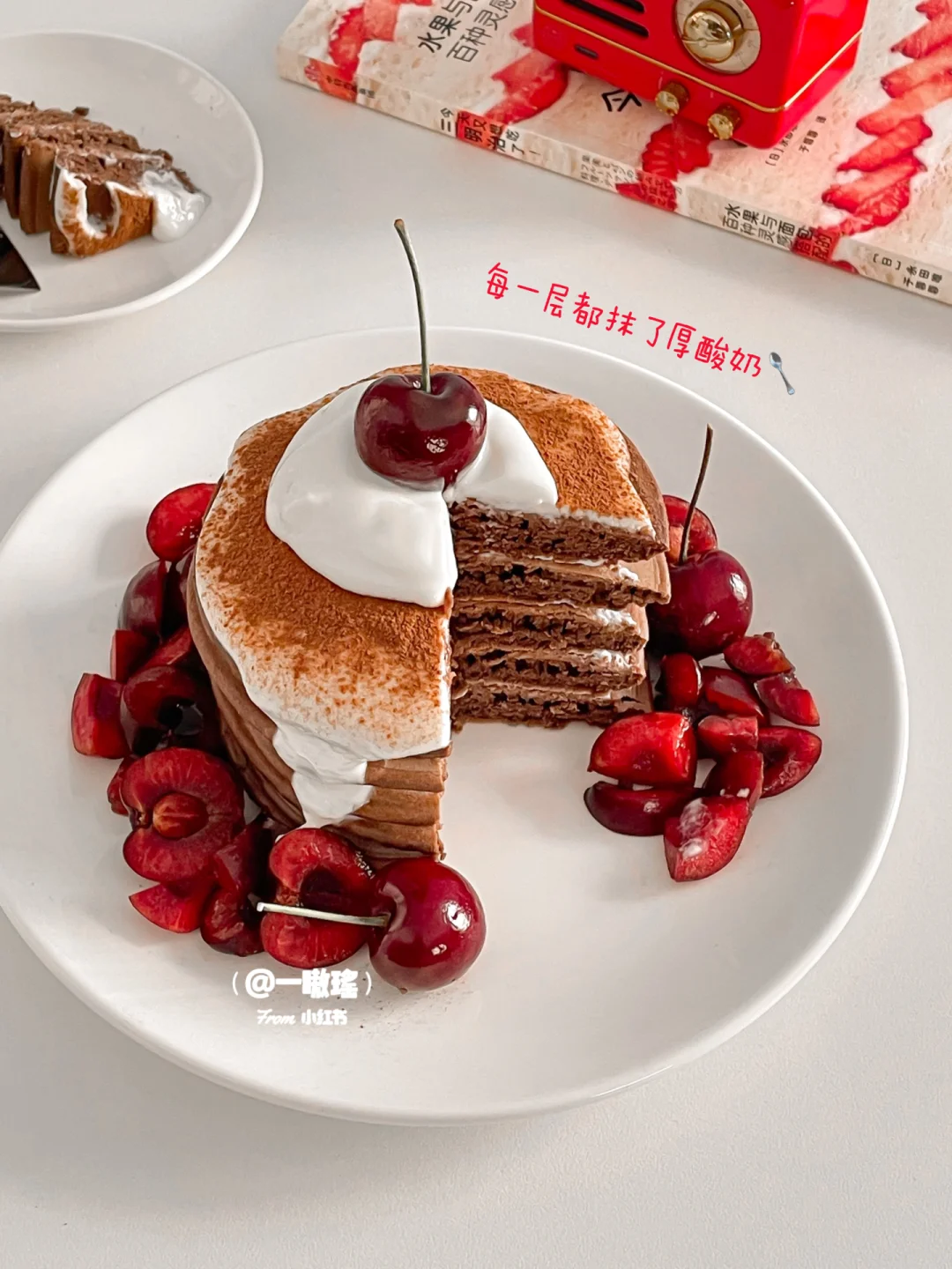 浓郁🍫可可味厚松饼🥞 装饰脆甜车厘子🍒 一口沦陷~