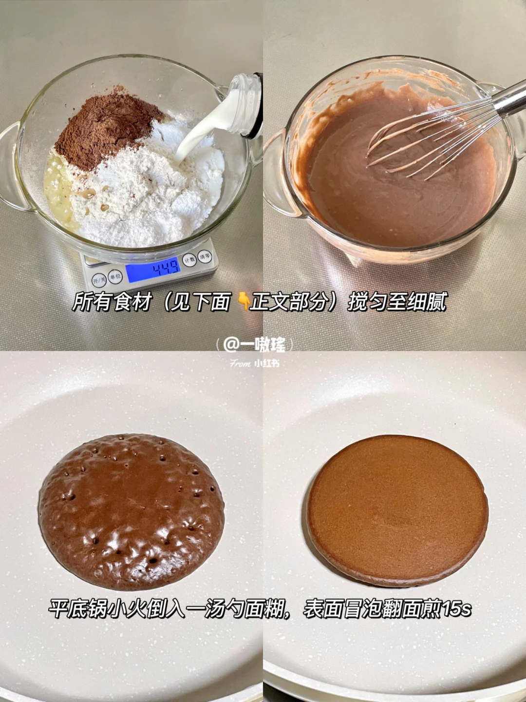 低筋面粉90g 可可粉15g 全蛋液50g 牛奶80g