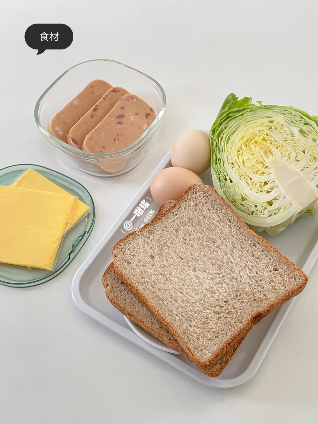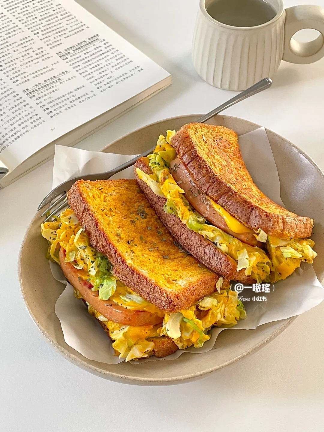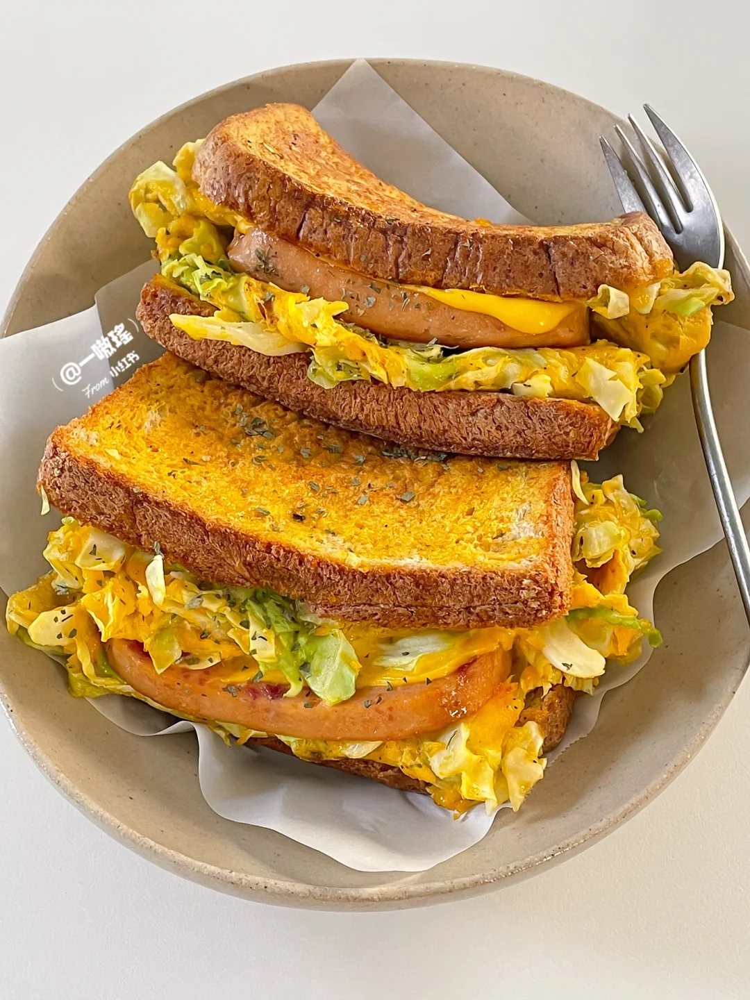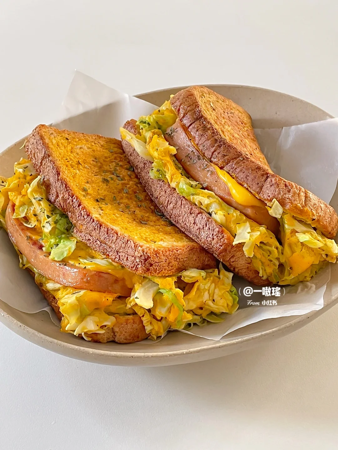 10分钟搞定元气早餐🧡包菜火腿蛋包三明治🥪