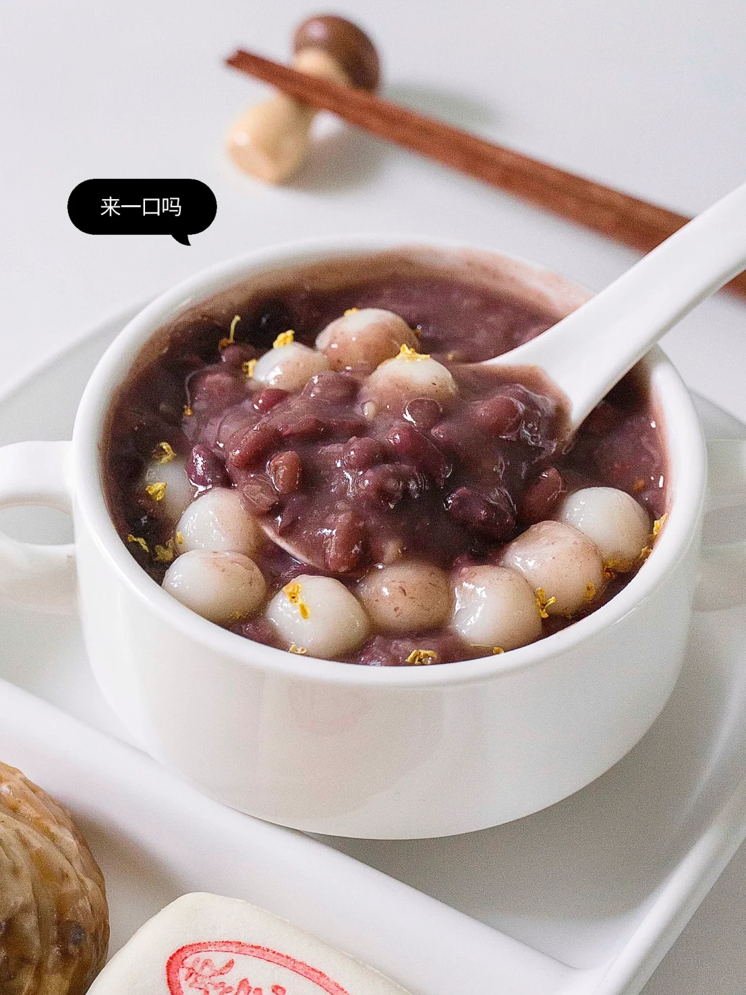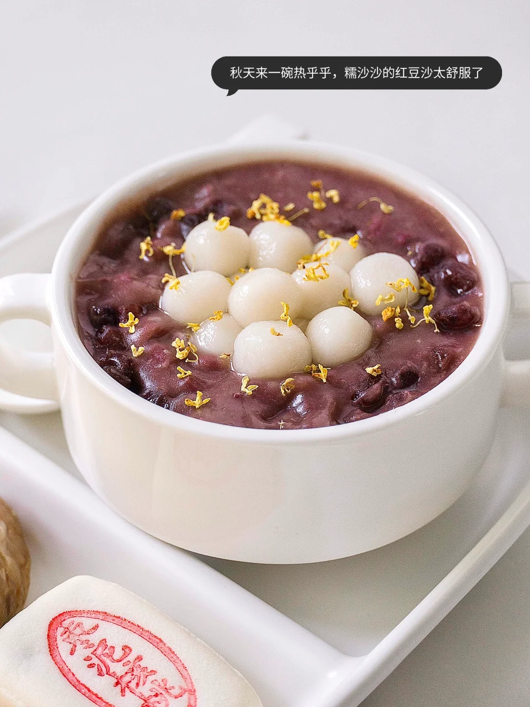 🫘热乎乎的桂花红豆沙小圆子加上好吃的糕点、自制红枣糯米糕
