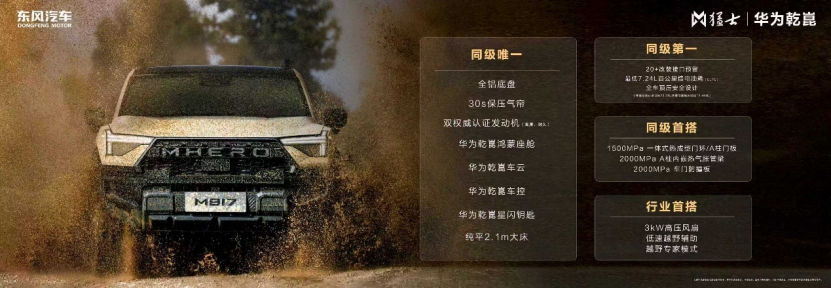 Q: 猛士M817 Hero版何时上市及售价多少?A: 11月21日上市,官方指导价30.19万元,12月31日前下定可享限时购车权益。Q: 新车的核心定位是什么?A: 定位为“智能越野第一车”,旨在解决用户越野安全与改装兼容两大核心痛点。Q: 车身安全有何突出特点?A: 采用“战甲车身”,高强钢占比83.2%,车顶顶压防护达20.2吨,获“十佳车身”奖项。Q: 底盘技术有哪些硬核实力?A: 搭载“磐石底盘”,为全铝结构,配备硬核三把锁,获“中国十佳底盘”大奖。Q: 智能座舱搭载了什么系统?A: 标配同级唯一华为乾崑鸿蒙座舱,支持无感交互和智慧语音,保障驾驶专注度。Q: 有何独特的通信保障?A: 同级唯一配备华为乾崑鲸鳍通信+卫星通讯,确保在无信号区域也能与外界保持联系。Q: 改装潜力体现在哪些方面?A: 预留20+处改装接口,拥有2.5吨合法拖挂资质,支持便捷、安全的个性化升级。Q: 是否提供原厂改装支持?A: 提供丰富的原厂改装件,如电动绞盘、侧爬梯等,保障改装的安全性与可靠性。
