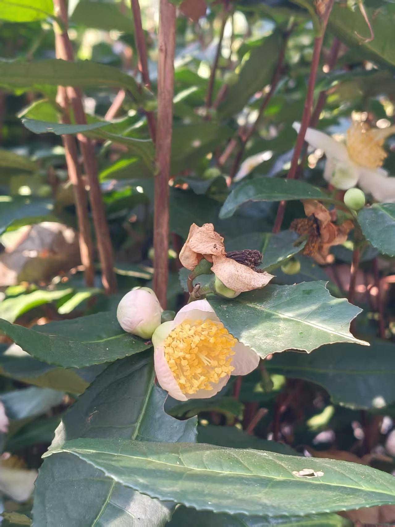 西湖龙井茶树开花了,那黄蕊白瓣的小花,精巧又清香,把茶园点缀得格外好看,引得不少游客纷纷驻足打卡。不过这花开在茶农眼里可就不是啥好事了。茶树开花结实本是自然现象,茶树花好看,茶树果用途也广,但龙井茶树主要是采嫩叶的经济作物,开花过多会消耗大量养分,影响来年春茶产量和品质。茶农为了抑制茶树开花,又是修剪树枝,又是调整肥料成分,最直接的就是摘除花苞、花朵。毕竟,3月开采的春茶才是他们的心头宝。
