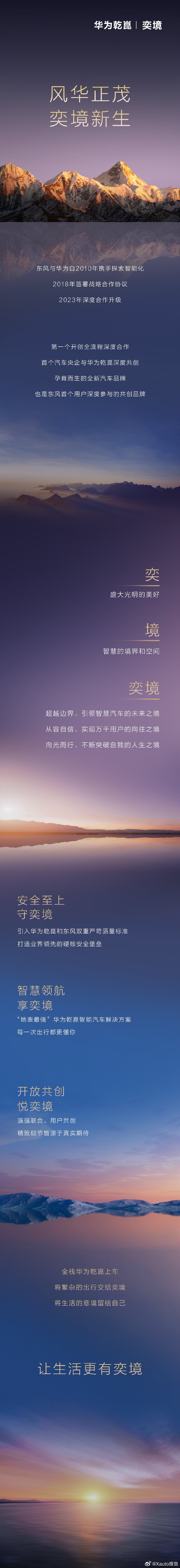 启境作为华为乾崑生态新玩家,一发布就气场独特,是华为乾崑深度共创的全新成果。其“年轻化”定位受任老亲自点拨,彰显品牌初心,有望在华为生态中开辟年轻市场新赛道,为用户带来更具活力的产品与体验,也为华为生态注入新鲜血液,值得期待其后续在年轻消费群体中的表现与市场突破。奕,是盛大光明的美好。境,是智慧的境界和空间。奕境,让生活更有“奕”境。