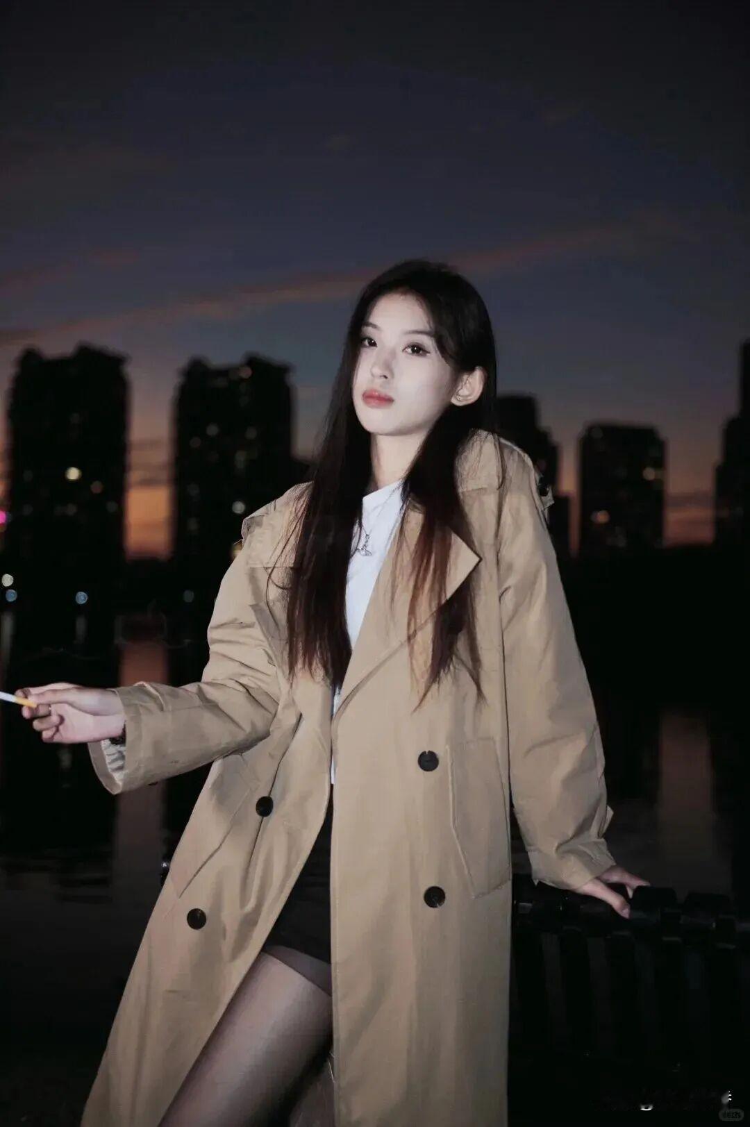 黑色毛衣搭配短裙,简约时尚,手提咖啡杯,享受悠闲时光。