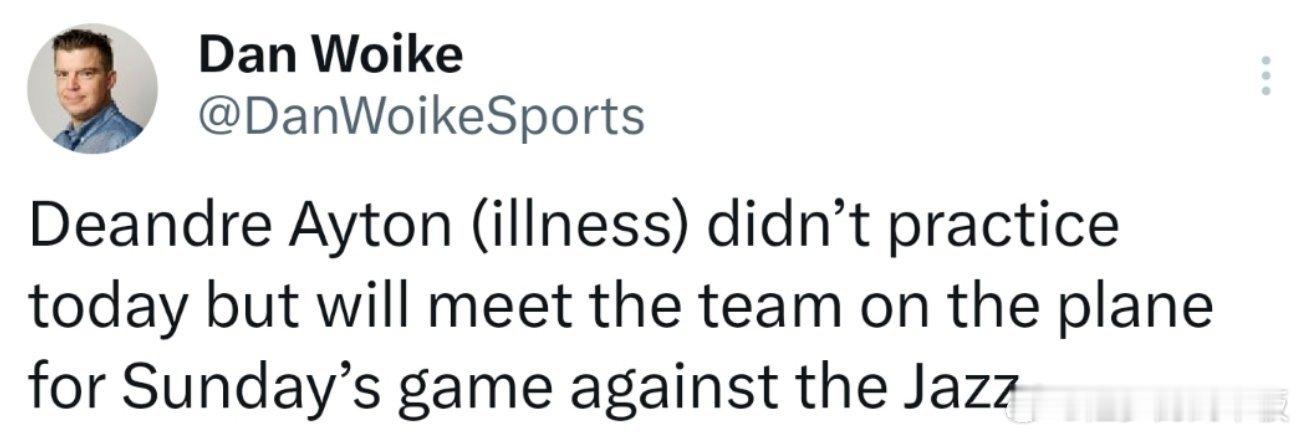 艾顿因生病未参加今天的训练,但他仍会与球队一同飞往犹他高原!