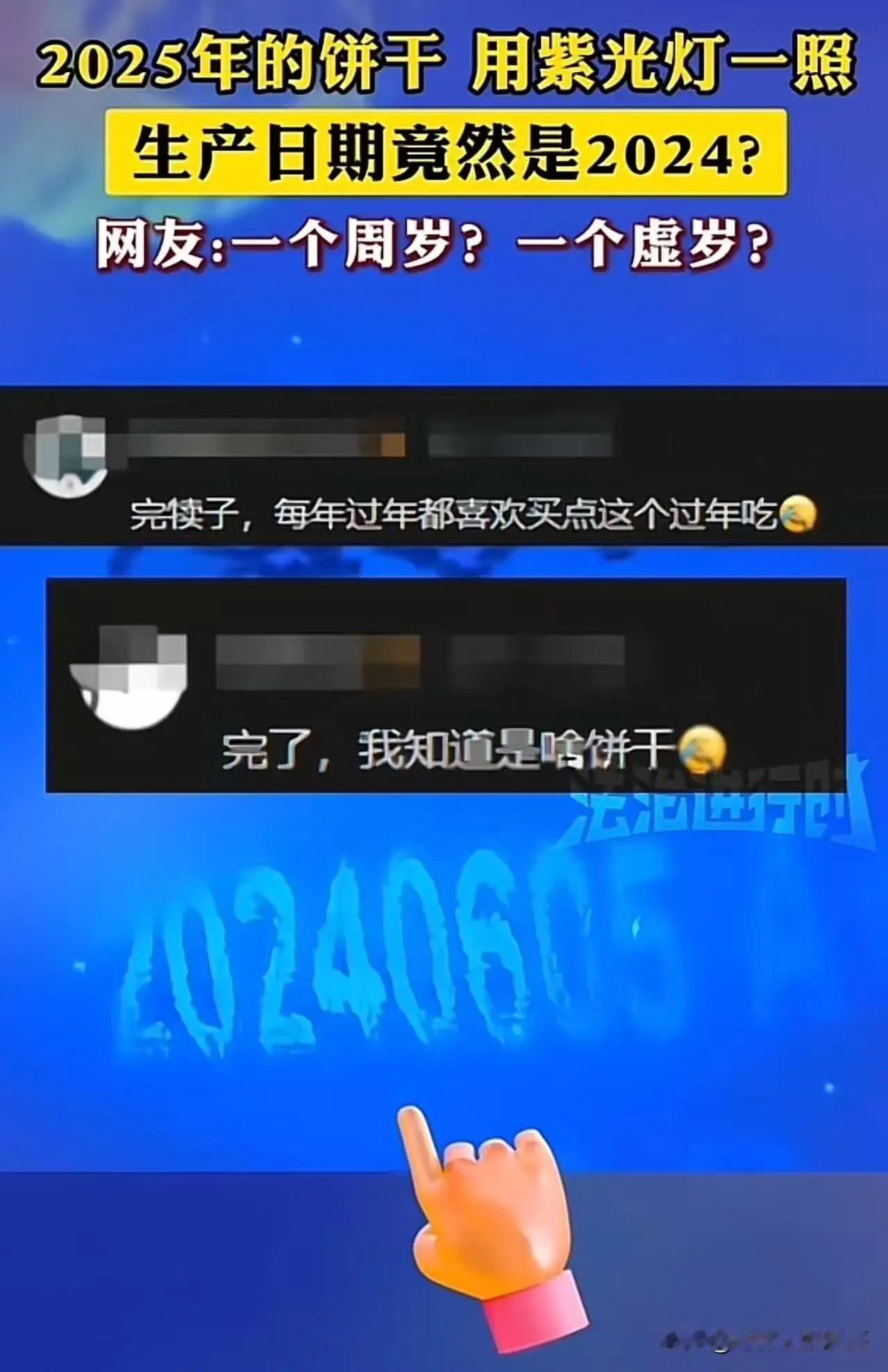辽宁,女子买了一包生产日期是2025 年的饼干,用紫光灯一照,包装袋上又出现一个2024 年的生产日期,很明显,这饼干的生产日期被篡改了!网友:别的不知道,月饼都是这么搞的! 王女士在超市买了包常吃的饼干,生产日期是2025年。但她边追剧边吃饼干的时候,越嚼越觉得不对劲:”这饼干怎么比平时硬?” 她拿起包装袋反复查看,生产日期并没问题,还在保质期内。 然而,奇怪的事情还远没有结束。王女士的直觉告诉她,这包饼干似乎隐藏着某些不为人知的秘密。她细细观察包装,试图找出不同寻常的地方,但一切似乎都很正常——标签上的日期显示依然在保质期内,包装完好无损。 可是,味道的变化让她心生疑窦。平时松软可口的饼干,今天却变得异常坚硬、口感怪异。难道只是偶然的存储问题?还是食品本身出了差错?但就在这个时候,她突然想起了一个新闻——有人用化学药剂涂抹过期食品的生产日期,重新打印后继续售卖。 “不会吧?”王女士心头一紧。她决定用手中的紫光灯再仔细检查一番。随着光线的扫过,令人震惊的画面出现了:包装袋上的生产日期“2025年”,在紫外线照射下,竟然隐约浮现出另一串数字——“2024年6月5日”。 这意味着什么?答案令人心惊:这包饼干的实际生产日期,远比标签上显示的早了整整一年!它们可能在某些商家手中被篡改,重新“包装”后,继续流入市场。这样的“伪造”行为,究竟隐藏了多少危险?又有多少类似的食品在我们的餐桌上暗藏风险? 这不仅仅是一个简单的“日期篡改”问题,更是反映出整个食品安全体系中的漏洞。很多消费者像王女士一样,虽然有一定的警觉,但面对琳琅满目的商品,却难以识别其中的猫腻。我们相信,公众的每一次质疑和曝光,都是推动行业变革的力量。 这次事件提醒我们:食品安全,不应只是监管部门的责任,更需要每一个消费者的“火眼金睛”。用科学的工具、用敏锐的直觉去辨别那些“被篡改”的商品,是我们每个人都应该掌握的基本技能。更重要的是,企业的诚信和责任感,才是根本的保障。 面对“假货”横行的市场,我们不能坐视不理。只有全民共同努力,增强识别能力,才能真正守护好自己和家人的健康。毕竟,没有什么比“安全的食物”更值得我们用心去守护。 这不仅仅是一包饼干的故事,更是一场全民食品安全的警醒。你我都在这个市场中扮演着“守门人”的角色。让我们一起行动起来,用“眼睛”和“心”去识别每一份食品的真伪,为自己,也为下一代,撑起一道坚不可摧的安全防线。头号周刊
