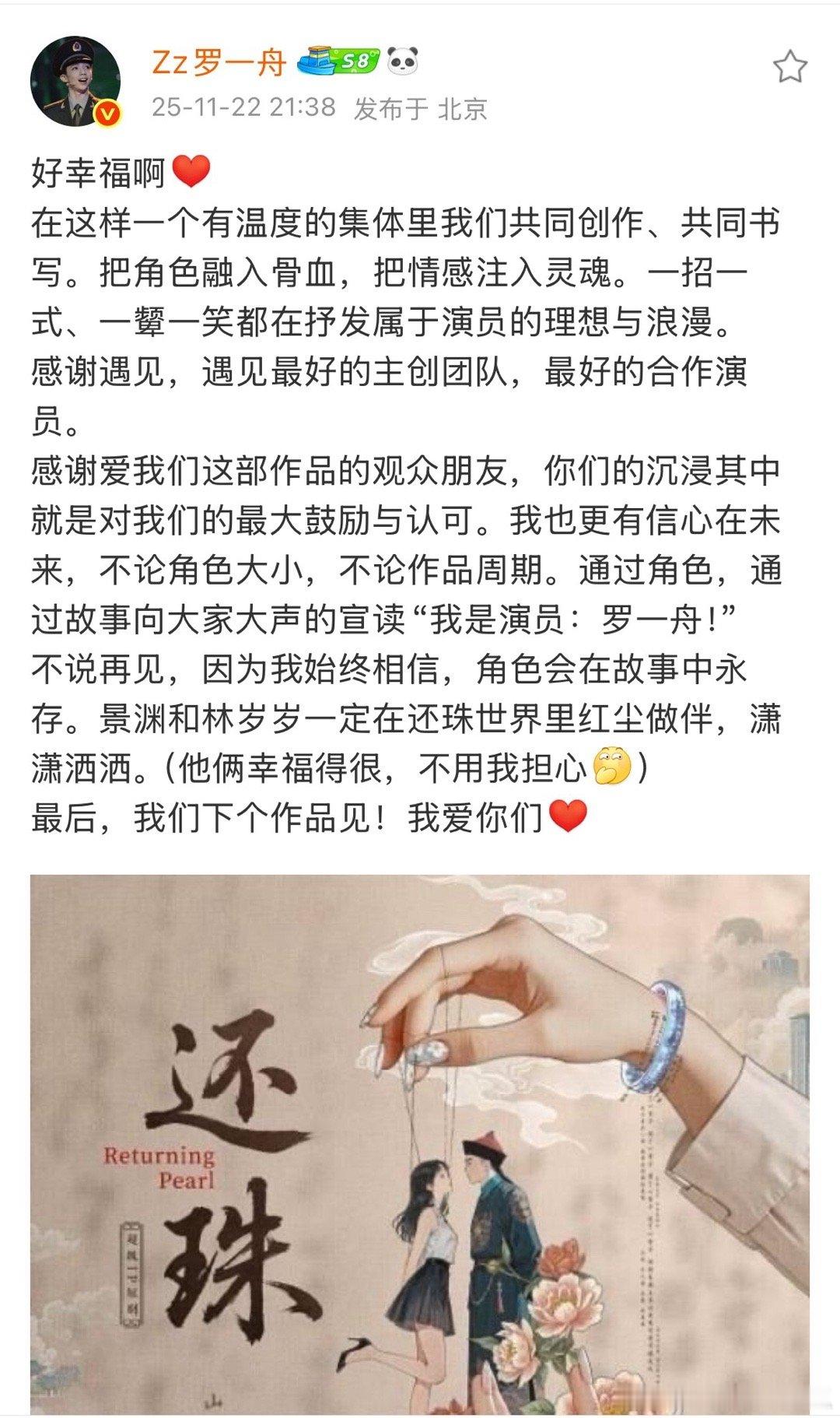 罗一舟发文告别还珠:好幸福啊!下个作品见!这不大生意人李钦来了看预告,戏份也挺重的,期待一下!