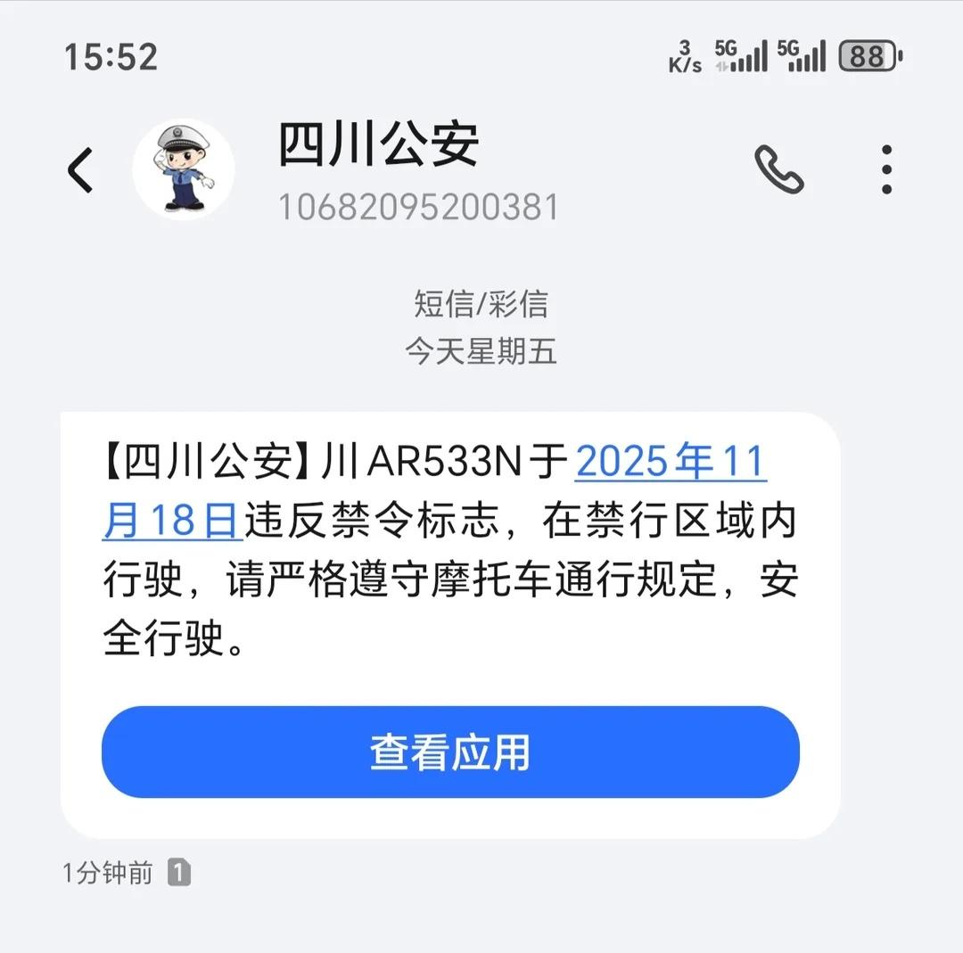 成都是彻底没法骑摩托了 以前限行区域高新区这片一直都是只要不张扬,老老实实守规矩骑车通勤一般现场也不管 今天突然收到短信!!被拍了!我一个在高新搬砖的苦逼踏板车啊!而且还不知道是哪里遭的 大家接下来都咋整?已经看到不少人发过被拍了 摩托车