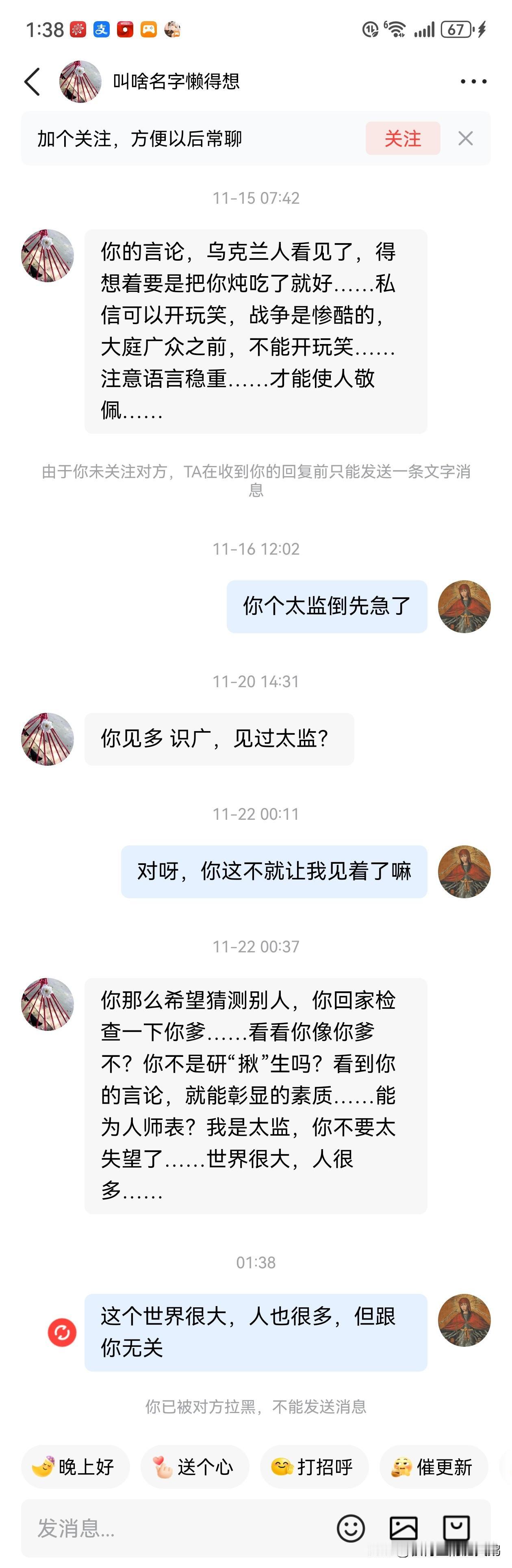 被俺三言两语嘲讽,这太监又破防了? 呵呵,主动私信挑衅,就这战斗力?这个简中乌友能力太次啊[笑哭][笑哭][笑哭]