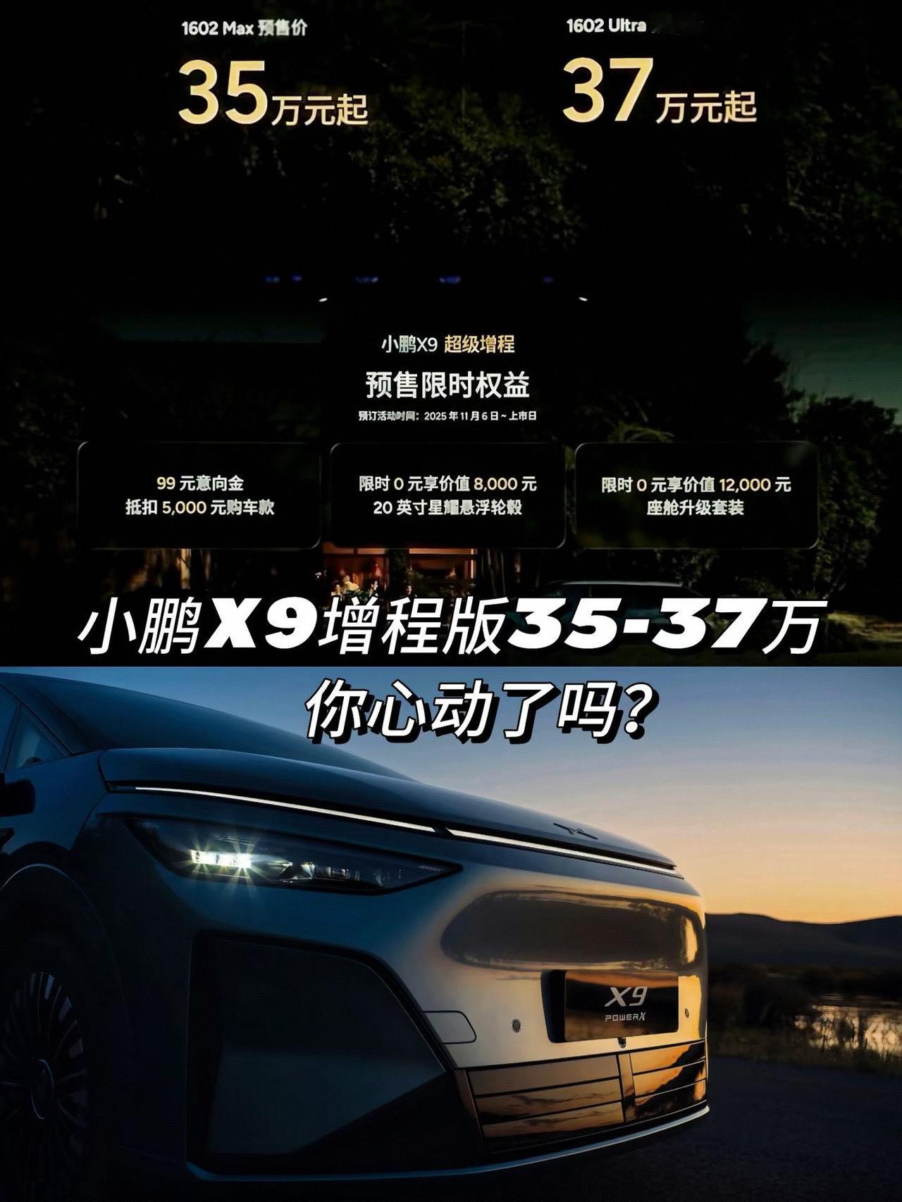 😎【车型背景速览】 小鹏X9超级增程版正式上市,起步价30.98万,比预售直接降了4万!纯电续航标到452公里,综合续航更是突破1600公里。作为新势力里首款主打“超级增程”的MPV,这车明显是冲着理想MEGA、腾势D9这些老炮来的。 👍【优势亮点】 1️⃣ 纯电续航真能打 452公里纯电续航,同级基本没对手。日常通勤按一周算,基本不用加油,家里有桩的话,每月电费可能就一两百块,通勤成本直接打下来了。 2️⃣ 价格玩真的 起步价不到31万,比预售降4万这操作,小鹏这次挺狠。同样预算原本可能只能看D9的中配,现在X9直接入门即高配,性价比瞬间凸显。 3️⃣ 后轮转向神器 这么大个MPV,转弯半径比很多轿车还小。老小区窄路调头、商场机械车位,压力小很多。这功能谁用谁知道,尤其是家里有新手司机的。 4️⃣ 空间魔术师 第三排能完全藏进地台,变成纯平货厢。拉露营装备、婴儿车甚至搬家运大件,都比普通SUV能装。二排通道宽度也足够,进出第三排不憋屈。 👎【待改进点】 1️⃣ 设计太前卫 星际战舰造型喜欢的人真喜欢,但传统MPV用户可能觉得过于激进。尤其是商务接待场景,的气场可能不如D9、GL8那么稳重。 2️⃣ 内饰细节欠火候 对比理想MEGA的冰箱彩电大沙发,X9的豪华感营造还是偏理工男思维。 3️⃣充电依赖度高 要想省钱就得经常充电,没家充桩的话,每周跑快充站对MPV用户可能有点麻烦。虽然800V充电快,但找桩排队时间成本也得考虑。 🎯【适配人群分析】 ✅ 适合人群 · 家充方便、日常通勤距离长的奶爸家庭 · 对智能驾驶(XNGP)有强依赖的科技控 · 经常有多人出行+大件装载双重需求的用户 ❌ 慎重考虑 · 频繁商务接待、需要稳重形象的用户 · 充电不便、长期馈电使用的地区 · 对内饰豪华感和细节质感有极高要求的消费者 💡【总结】 小鹏X9超级增程版是款特点鲜明的车:它用同级最长的纯电续航解决日常成本焦虑,用后轮转向+灵活空间提升实用性,再用主动降价凸显诚意。但在豪华氛围和细节质感上,仍和头部对手有差距。如果你追求科技感、重视实用且家充方便,它可能是30万级最值得考虑的MPV之一;但如果更看重品牌气场和商务属性,建议再多对比试驾。【来自懂车帝车友圈】