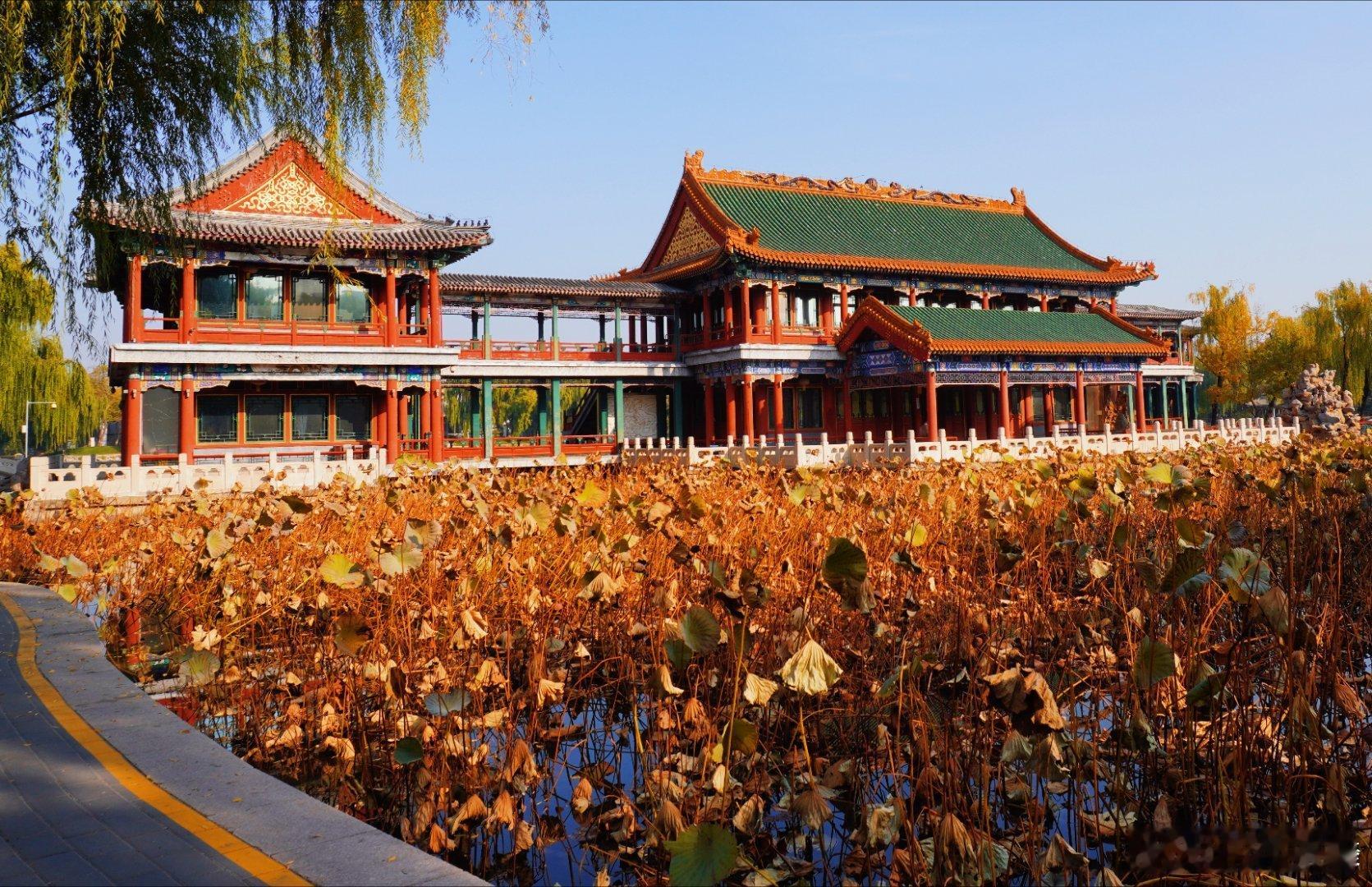 【初冬时节】初冬的龙潭湖,藏着清寂的美。湖面收了夏的热闹,水色沉碧;岸边的柳丝褪尽绿裳。步道上落满梧桐叶,踩上去簌簌响,老人裹着厚衣服弹琴,妇女们悠起绸缎跳舞。阳光透过疏枝洒下,暖得刚好。风里带点凉意,却吹不散这园子里的闲适,像杯温好的茶,余味悠长。 摄影
