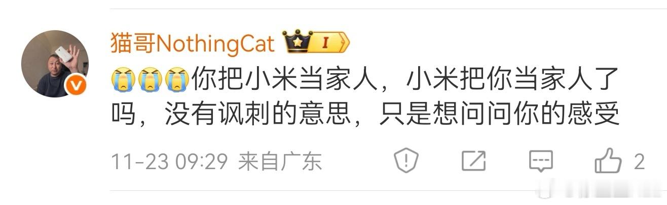 我只是觉得小米的很多产品不错,所以我就买了。就是普通的消费行为,我没把谁当家人。王化如果觉得我这个消费者有问题,王化出来骂我也是理所应当。王化离开原有工作岗位也只是正常的轮岗。跟我没什么关系。