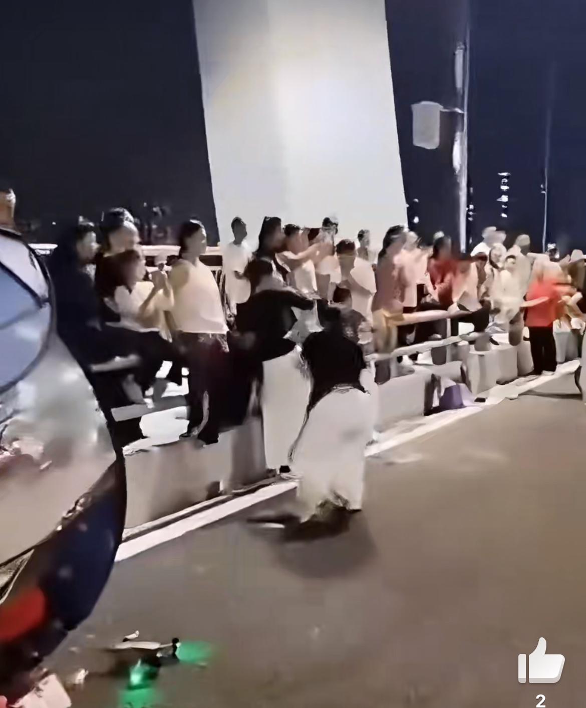 马路跳舞团竟然在车水马龙的大桥上排练节目,无视车辆鸣笛警告。一群妙龄大妈,身材曼妙,在不知道哪里的大桥上跳舞排练,旁边还有一堆人在围观,指点,估计是一伙的吧。不知道这些人是眼盲耳聋不认识车,还是有特权把大桥面当自己的演舞场,让过往车辆让路。这要是有那个不长眼的,估计就割韭菜了,要赔偿吗?乱跳舞的人