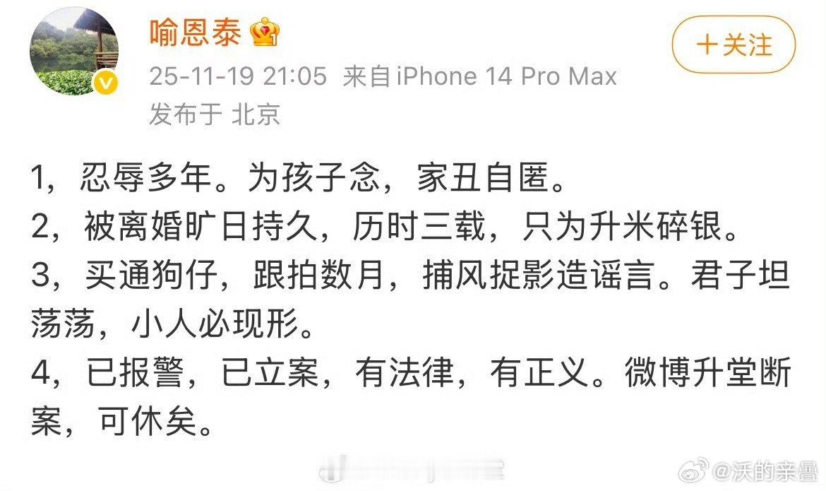 不需要谁说我上线只看到喻恩泰说什么“忍辱多年”我就不信一根根本不信男的能为女的“忍辱多年”