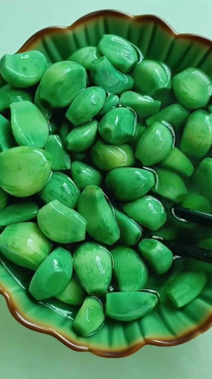 我们这里有腌制“腊八蒜”。准备透明罐子,刷洗干净,晾干。蒜瓣选择饱满的,如果太大,可以剖开两半,容易腌制,口感更好。醋蒜的容积比例大概2:1装罐放置在10℃—15℃的地方,八九天就可以了 腌制的好的话,翠绿翠绿的,而且不太辣,如果喜欢吃鬼子姜(我们河南称山姜),后期放入鬼子姜别有一番风味。下面两个图片左边是我买的水晶腊八蒜,右边我自制的。感觉买的少了些真实的蒜味,自制的蒜味更淳厚?可能有些人不喜欢蒜味,但腊八蒜特解腻,腊八蒜就饺子那叫一个绝配。吃完大鱼大肉,来几瓣腊八蒜,那酸爽。有喜欢腊八蒜的友友吗评论区讨论一下哦? 腊八蒜炮制方法 醋泡蒜腊八蒜 醋泡大蒜 饭店腊八蒜 腊八蒜配方