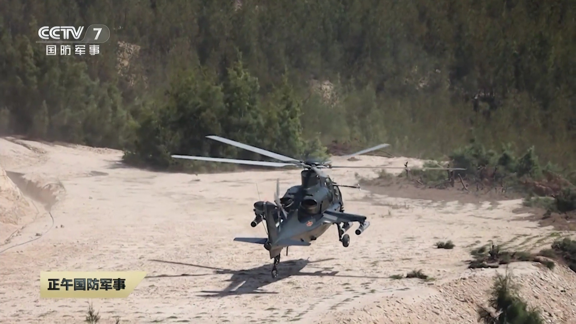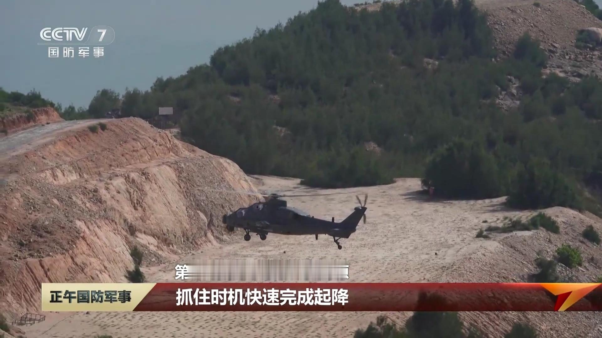 直升机在海岛野外备降场降落