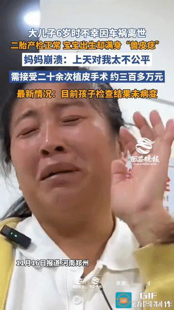 “厄运专挑苦命人!”河南郑州,大儿子6岁时不幸因车祸离世,悲伤过后女子又要了第二胎,产检一切正常,可等孩子生下来的时候,女子天都塌了,宝宝满身皮肤都是黑色的,被医生确诊得了“兽皮痣”!需要做植皮手术,而且不是一次性的可以好的,要痊愈需要二十多次的手术,光手术费都要三百多万了!妈妈感觉自己的天都要塌了! 不说孩子那么小就要要这么大的罪,作为妈妈不忍心。这手术费也是个很大的问题,三百多万不是三十多万,一个普通的家庭哪里去挣那么多钱。可放弃又不太可能,关乎孩子一辈子的事,现在孩子小皮肤少,孩子越大皮肤越多,花费肯定也越大! 现在怀孕各种产检,为什么这种检查不出来啊,如果一开始就检查出来就可以不要了,对孩子对这个家都好! 难怪这个妈妈哭的这么伤心,本来想着再要一个孩子弥补失去大儿子的遗憾,没想到小儿子又这样,还真不知道要怎么办了! 麻绳专挑细处断,厄运专挑苦命人!希望有好心人或者机构能帮一帮这个家庭,帮帮这个孩子! (视频来源:西安晚报,侵删[祈祷])