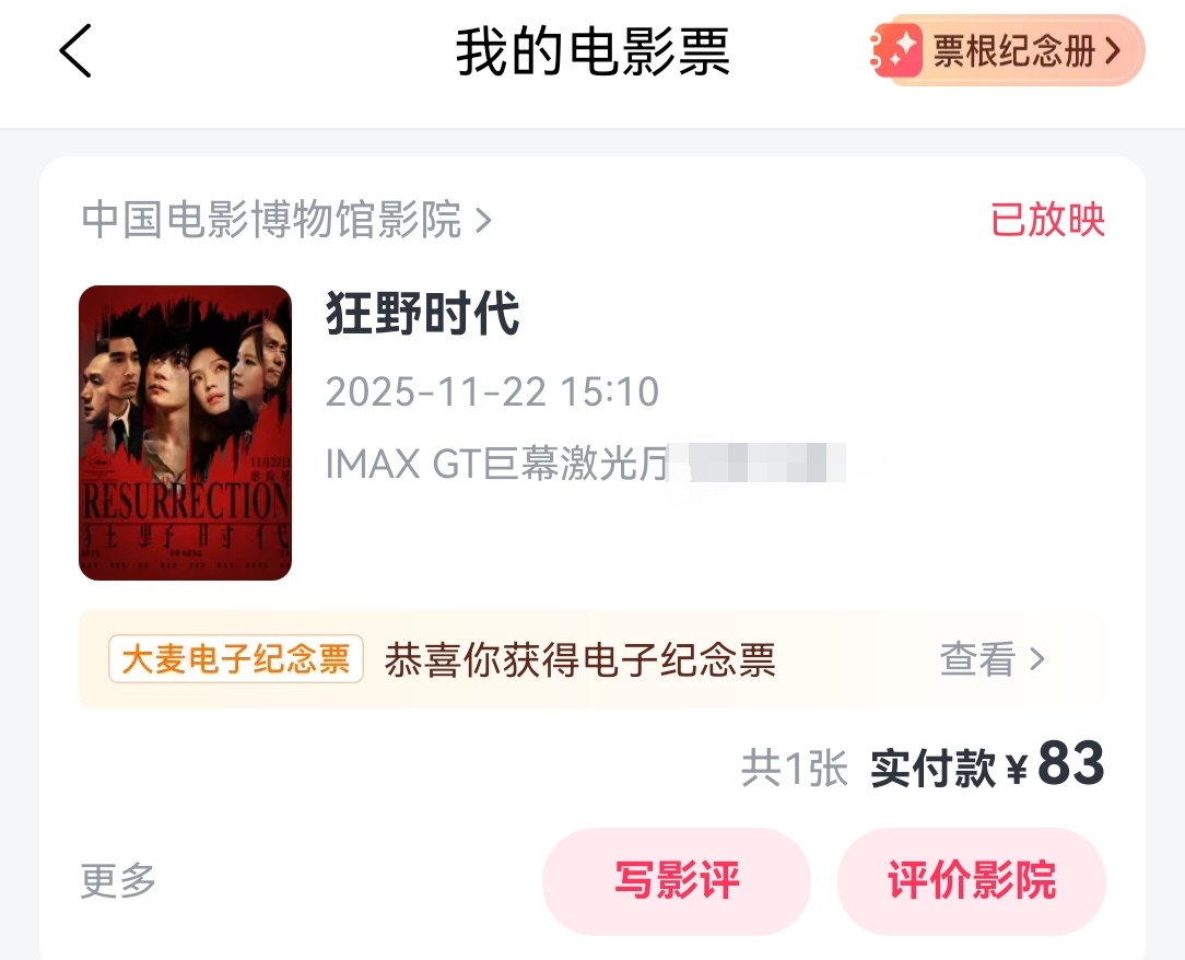 近年来对银幕宽容度有要求的电影我就只见过两部,一部诺兰的奥本海默,一部毕赣的狂野时代,这两部电影的共同特点就是全片放映进程中有三种以上不同比例的画幅的变换,如果你选择的市面上的主流标准长宽比的银幕,那么抱歉,你可能错失一次看到这部影片真正的全貌的机会。所以在不考虑距离时间金钱的情况下,一定要尝试寻找你能找到的最大最宽最高最亮的银幕来满足狂野时代这部只为银幕而拍的电影的观看,你会发现你在小厅小幕上看的时候丢失了太多太多细节与信息。