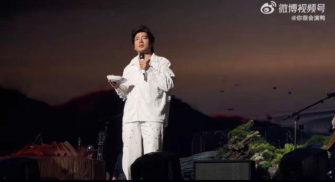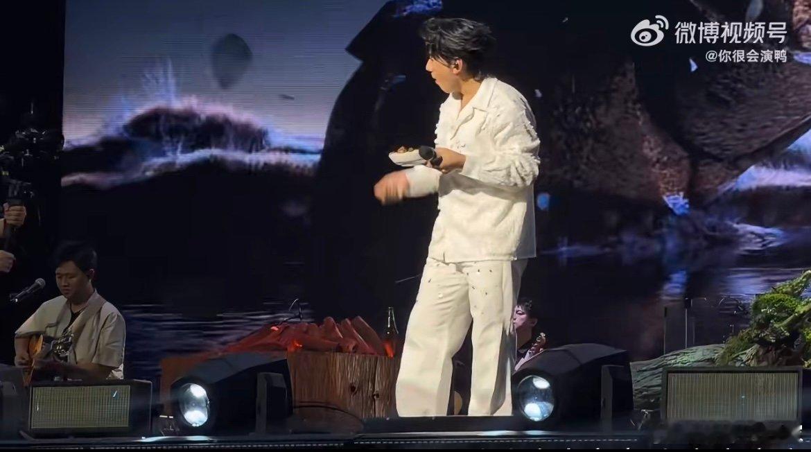 谁懂啊!海来阿木临沂站太会玩,唱《别知己》直接把炒鸡搬上舞台,边吃边唱还干了一杯,演唱会秒变老友聚餐现场~