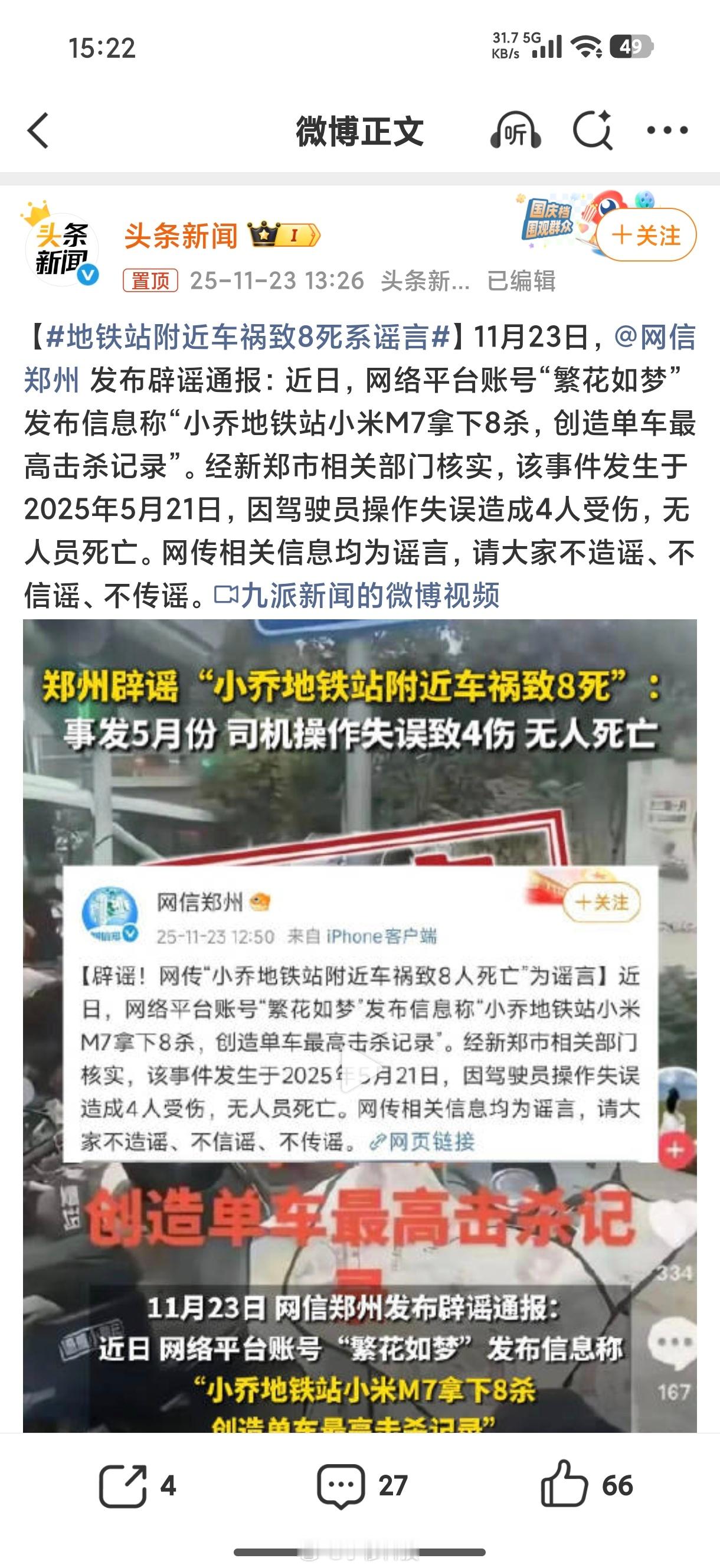 这两天好多人在我评论区发这个小乔地铁站车祸事件造成8死,结果今天官方辟谣了,实际车祸造成4人受伤,无人死亡,也算个好结果了