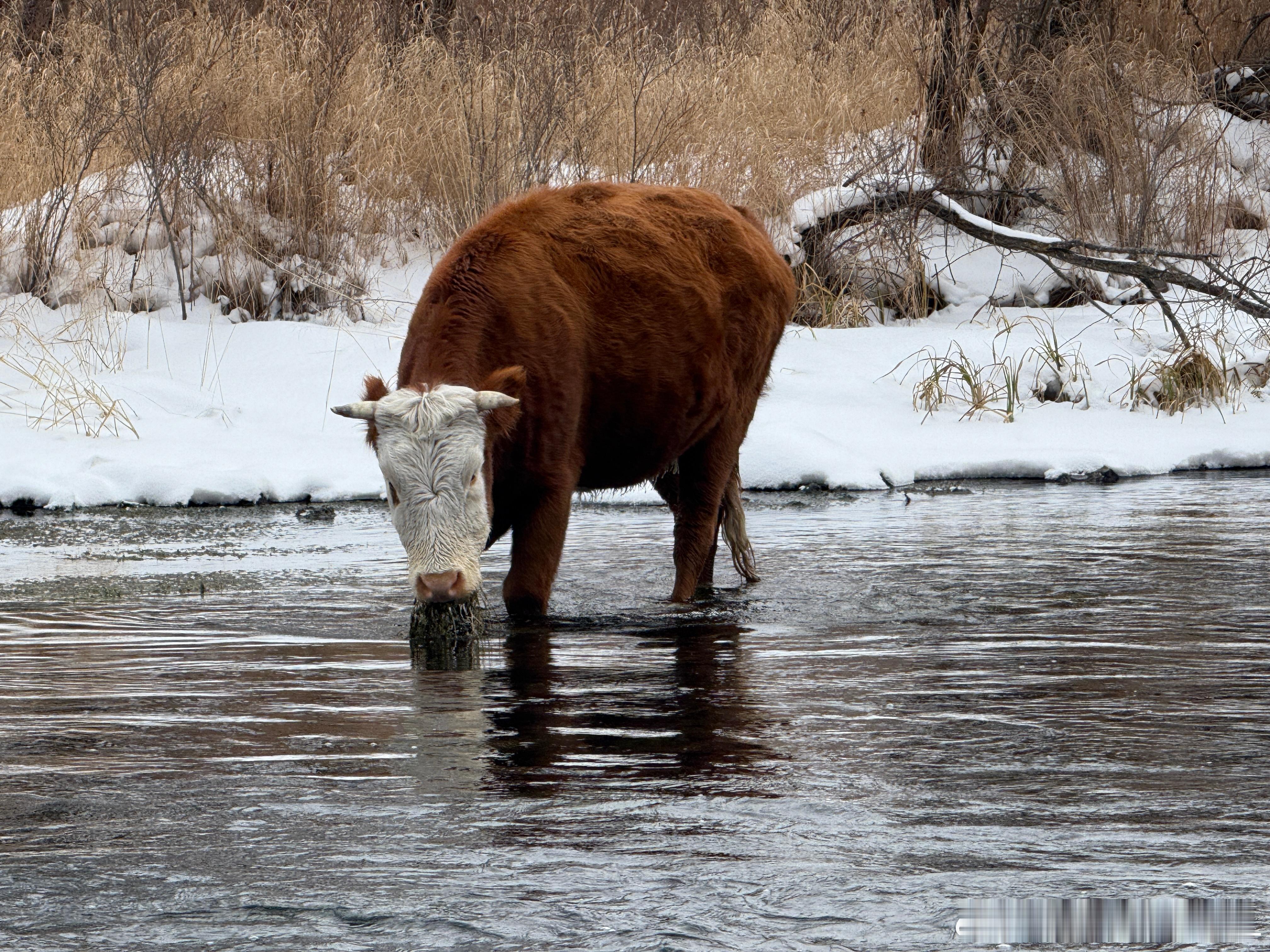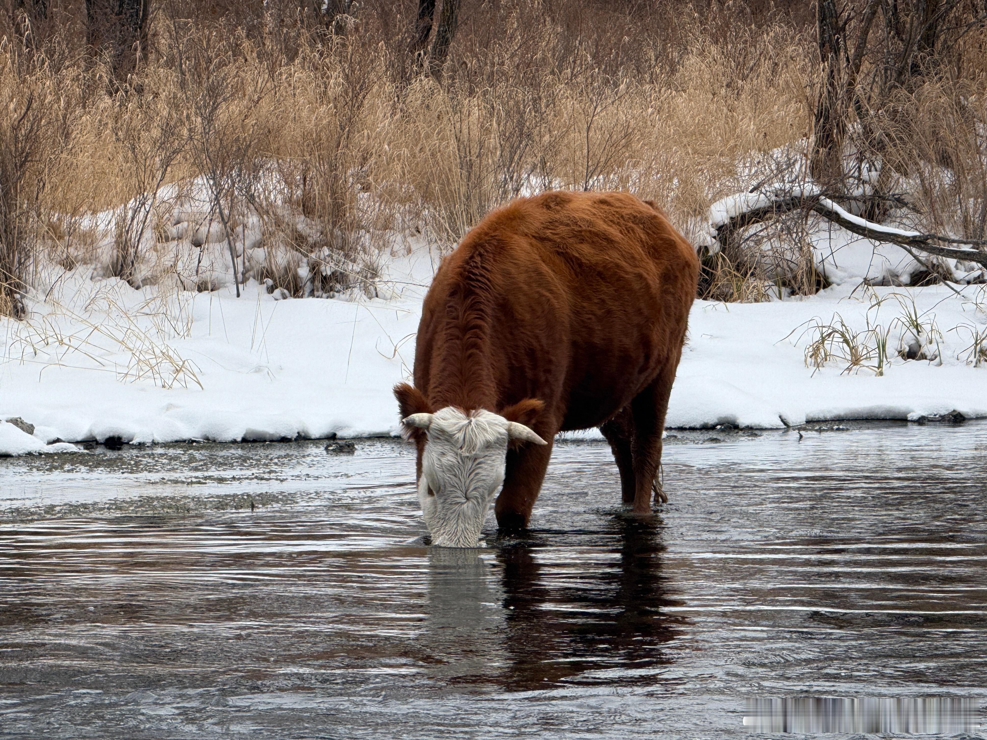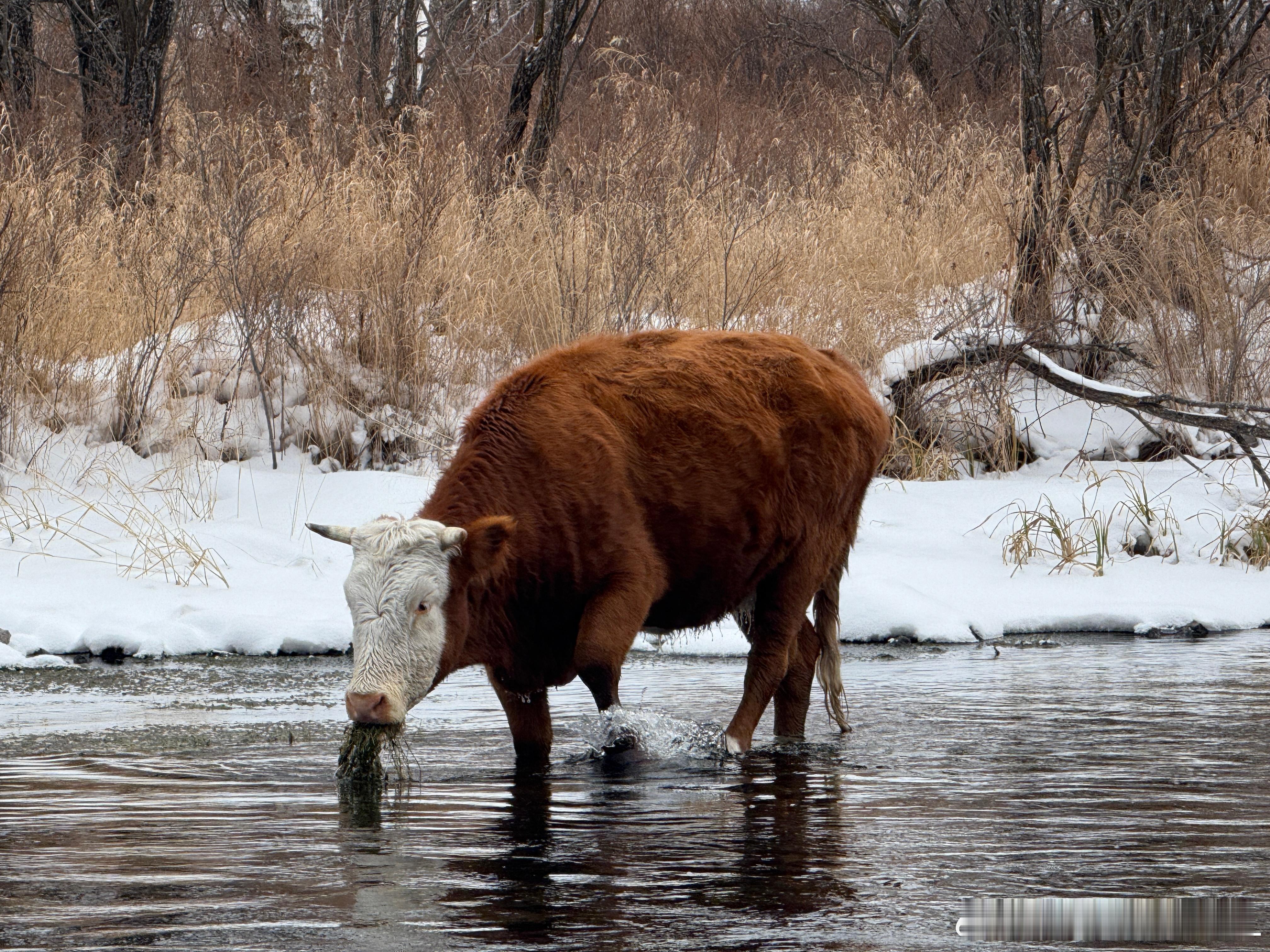 阿尔山的不冻河,因为河床下有地热的关系所以哪怕零下40度水也不会结冰。于是乎这里就变成了附近动物很重要的水和食物来源。我发这几张图是想说这个点了,牛都吃饭了我还没吃饭