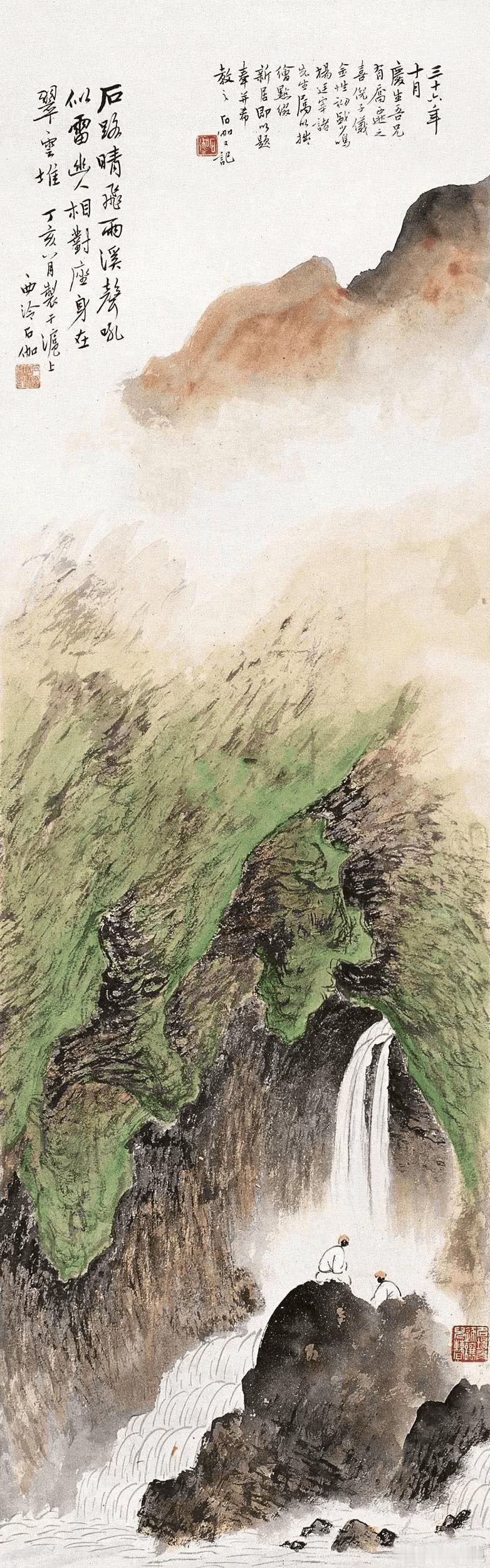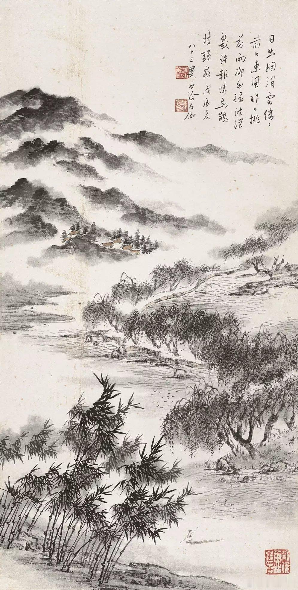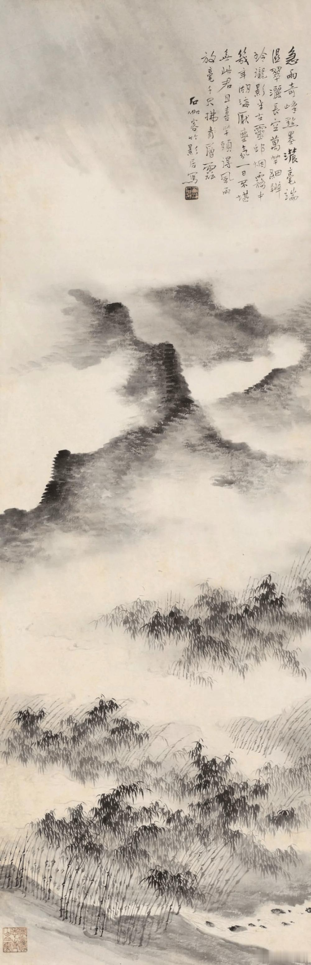 申石伽(1906-2001),别署西泠石伽,室名“六步诗楼”,浙江杭州人。他的祖父为晚清著名山水画家申宜轩,他的父亲也是一位画家,许是从小受到的艺术熏陶,出生于书画世家的申石伽在书画方面造诣颇高。早年师从俞云阶、胡也衲,1925年与康云、胡亚光等组织西泠书画社。1929年加入中国美术会,与叶浅予组织中国美术会第一届杭州画展。1949年后长期任教于上海工艺美术学校。申石伽擅画山水梅竹,山水宗明“吴门画派”及戴进诸贤,用笔清劲,墨色明润,以功力见长。他喜好将竹融入山水的一角,用淡墨和极轻之赭石、朱石票、朱砂渲染气氛,飘渺云烟,彤云曙色,自成家数,有“石伽竹派”之说。