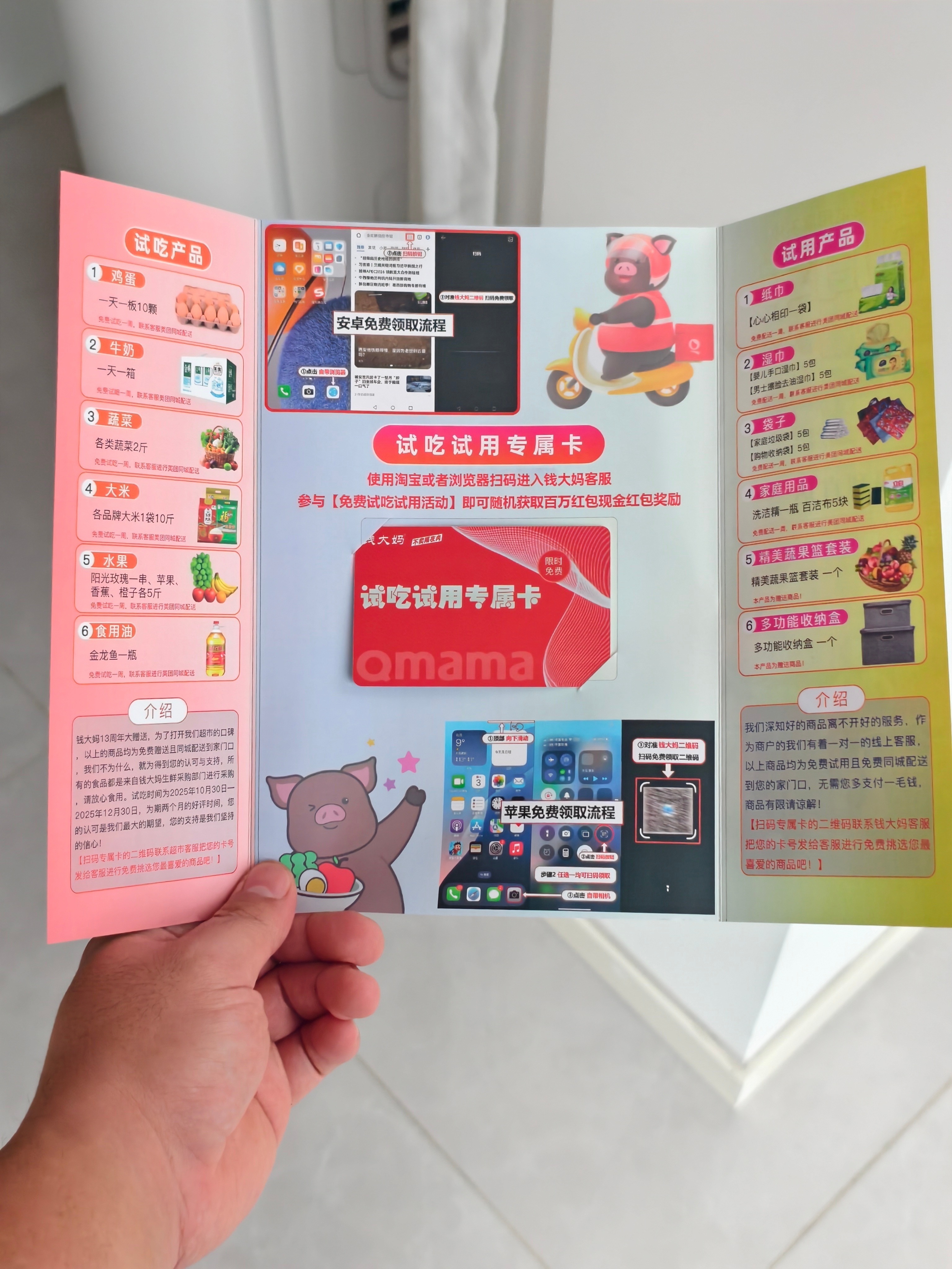 不会就是这个吧?!刚到家,发现它挂在门上了。不过,不是山姆,不是永辉,也不是盒马,竟然是钱大妈,关键是……青岛好像还没这超市吧? 只能说,投放的不够精准呐!不过,对老年人来说,确实挺有吸引力,就是操作上,恐怕都不太会。