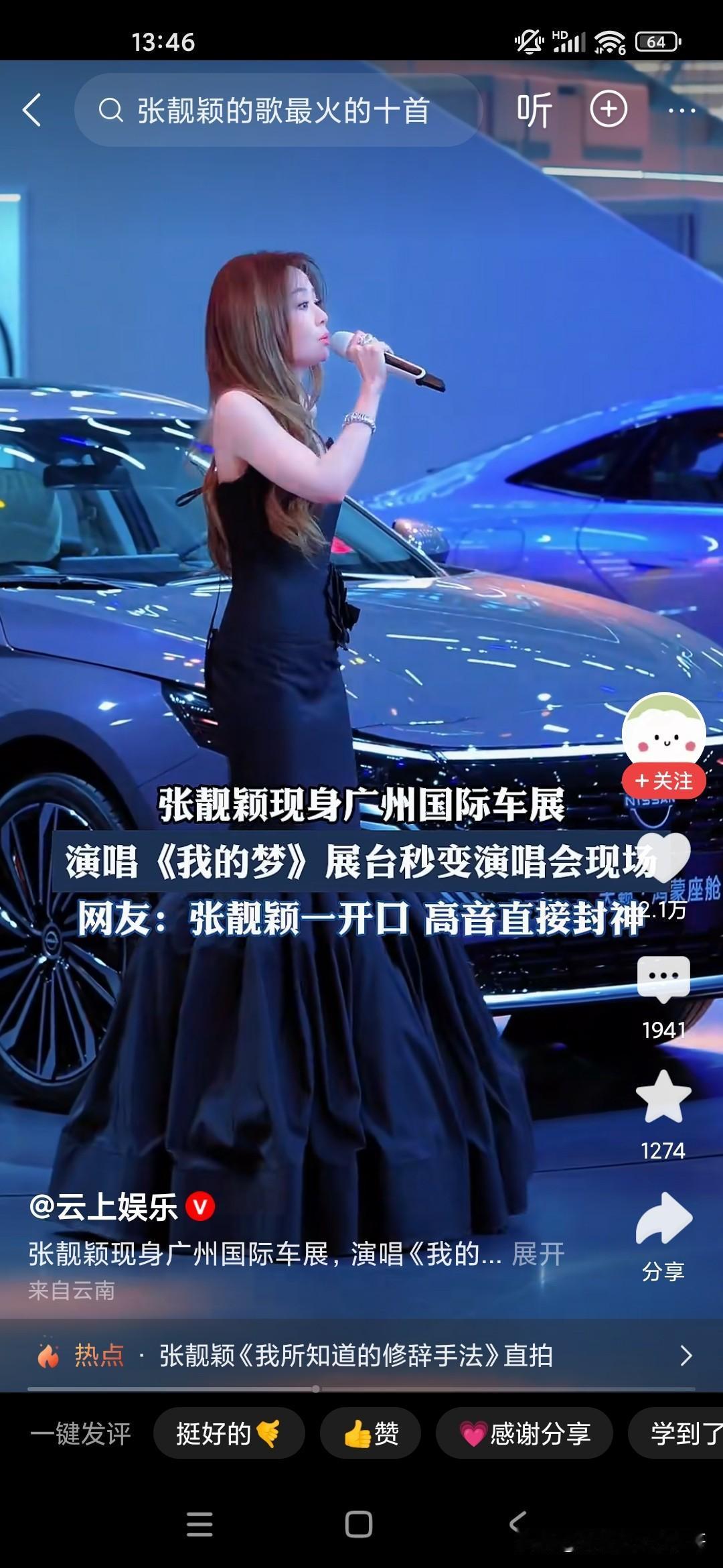 张靓颖是一个非常有实力的演唱家和歌手,她自己演唱的高音一般人很难匹敌。最近在广州的某车展上,她又再次放歌《我的梦》,因为这首歌的话是一首励志歌曲,以前的时候被华为买断了,不仅有中文版,还有英文版,但是的话非常流行,所以她的歌声里渲染了很多人,尤其对于那些精神比较低迷,人生正处于低谷的人,是一种很大的鼓舞,现在当她再次唱起这首歌,让现在的人感觉肃然起敬。我们作为一个普通人,有的时候不仅是看书,有的时候唱歌,听歌曲,对自己来说也是一种很大的启发,希望大家能够从《我的梦》中得到一些启示,让自己生之路更加一帆风顺,就是暂时不顺也没有关系,争取努力,坚持,只有执着才可以到达彼岸!