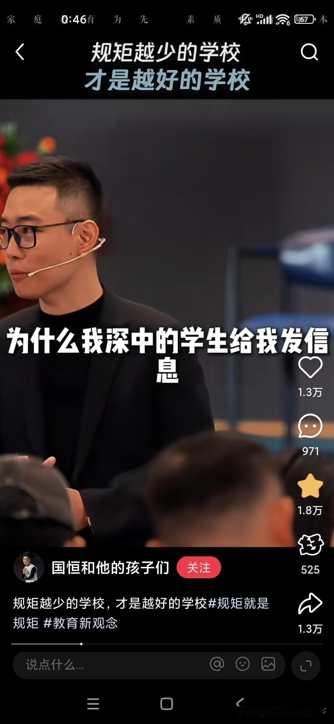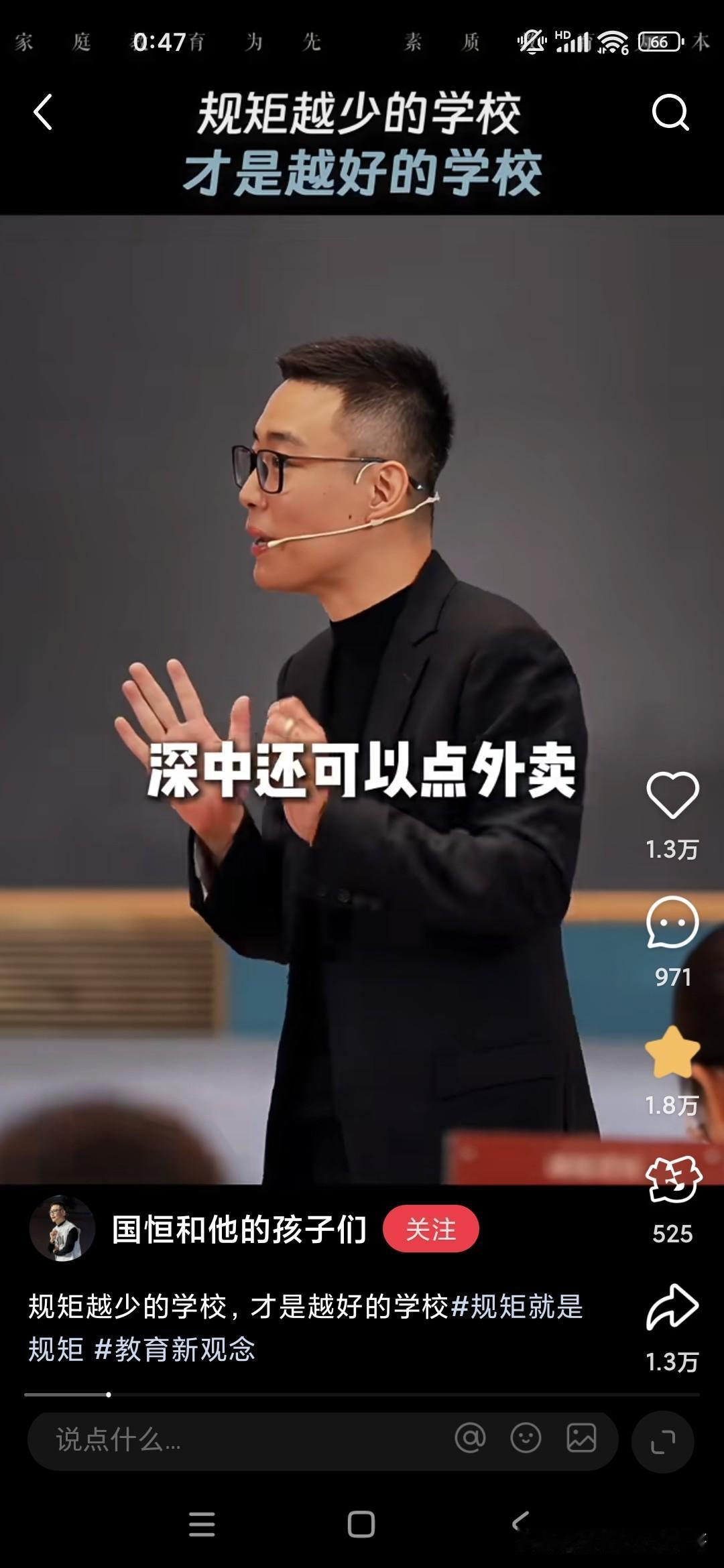 不知道你了不了解深圳中学这个学校,成绩是全广东省第一,凡是考进这个学校的学生都非常让其他的中学生羡慕,因为他们不限制发型,你想整什么发型就整什么发型,然后而且可以点外卖;第三的话是WiFi无死角,第四的话你可以带自己的手机和pad,学校不管的,这个老师就感叹越是高级的地方越自由,但前提是你必须要有非常好的自律能力,知道自己的主要任务是什么,你能够控制住自己使用手机和电脑的时间,如果没有这些自律能力的话,那你只能进入差的学校,越差的学校对你管理越严格,发型也管,吃的饭也管,外卖也更不让点,所以大家的话,为了争取更多的自由,争取考进好的学校!
