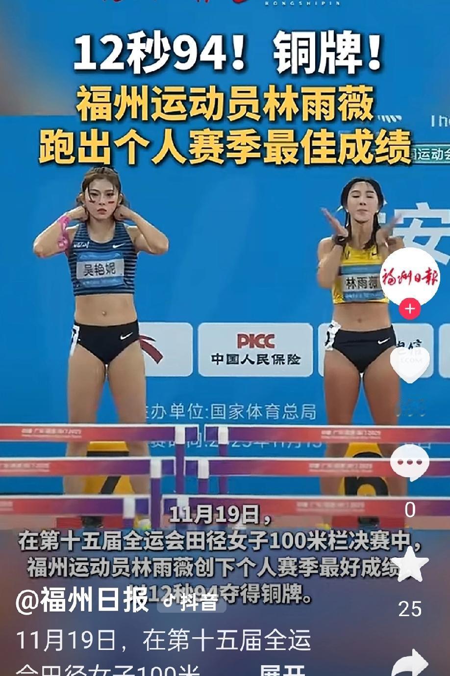 全运会赛后不仅陈梦让人暖心还有更令人暖心的: 25年全国金标赛刘景扬和林雨薇前后摔倒,林雨薇爬起来首先去搀扶刘景扬,两人互相查看伤势,确定刘景扬伤情不重,便笑着对走上来的工作人员摇摇头示意不要担心,而她自己摔的比较重,后来被队友搀扶离开比赛场。 全运会林雨薇以12秒94获得铜牌采访:她谈到刘景扬说话的样子令人特别舒服暖心,她好似憋了好久巴不得找人早点说出来:刘景扬在广东本土拿下一枚沉甸甸的金牌应该会失眠好几天,说着自己忍不住哈哈笑。她的笑发自内心太真诚,比她获得杭州亚运会冠军还开心。 林雨薇和银牌吴艳妮赛后采访判如俩人。 全运会100米跨栏刘景扬赢了比赛,林雨薇更赢了格局!