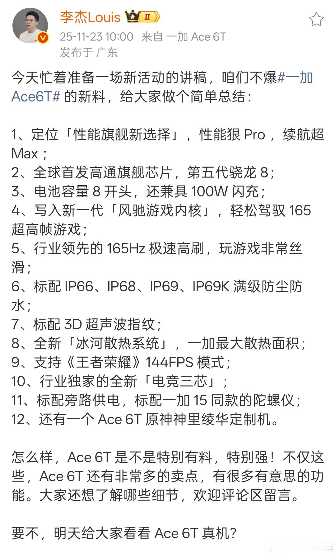 的料还是很足的,明天看看真机和Ace6有几分相似