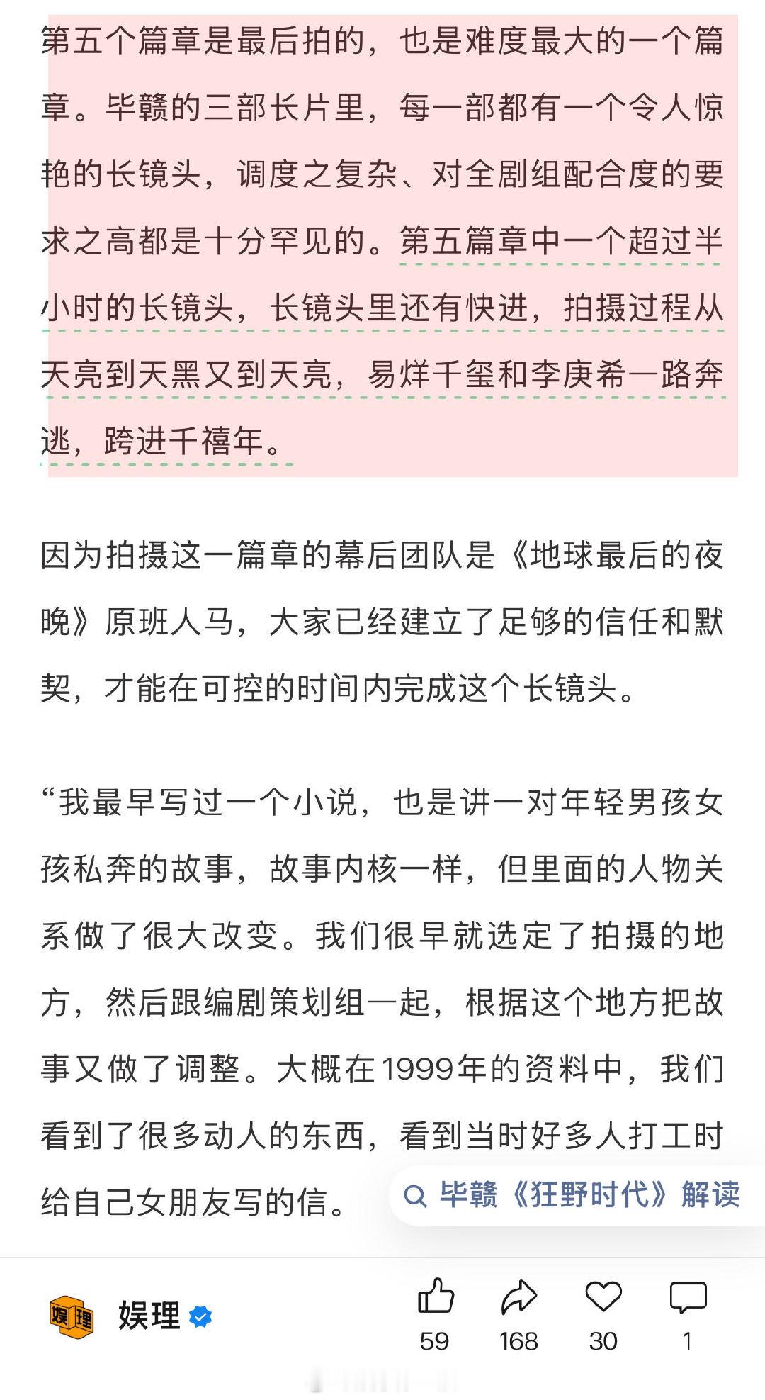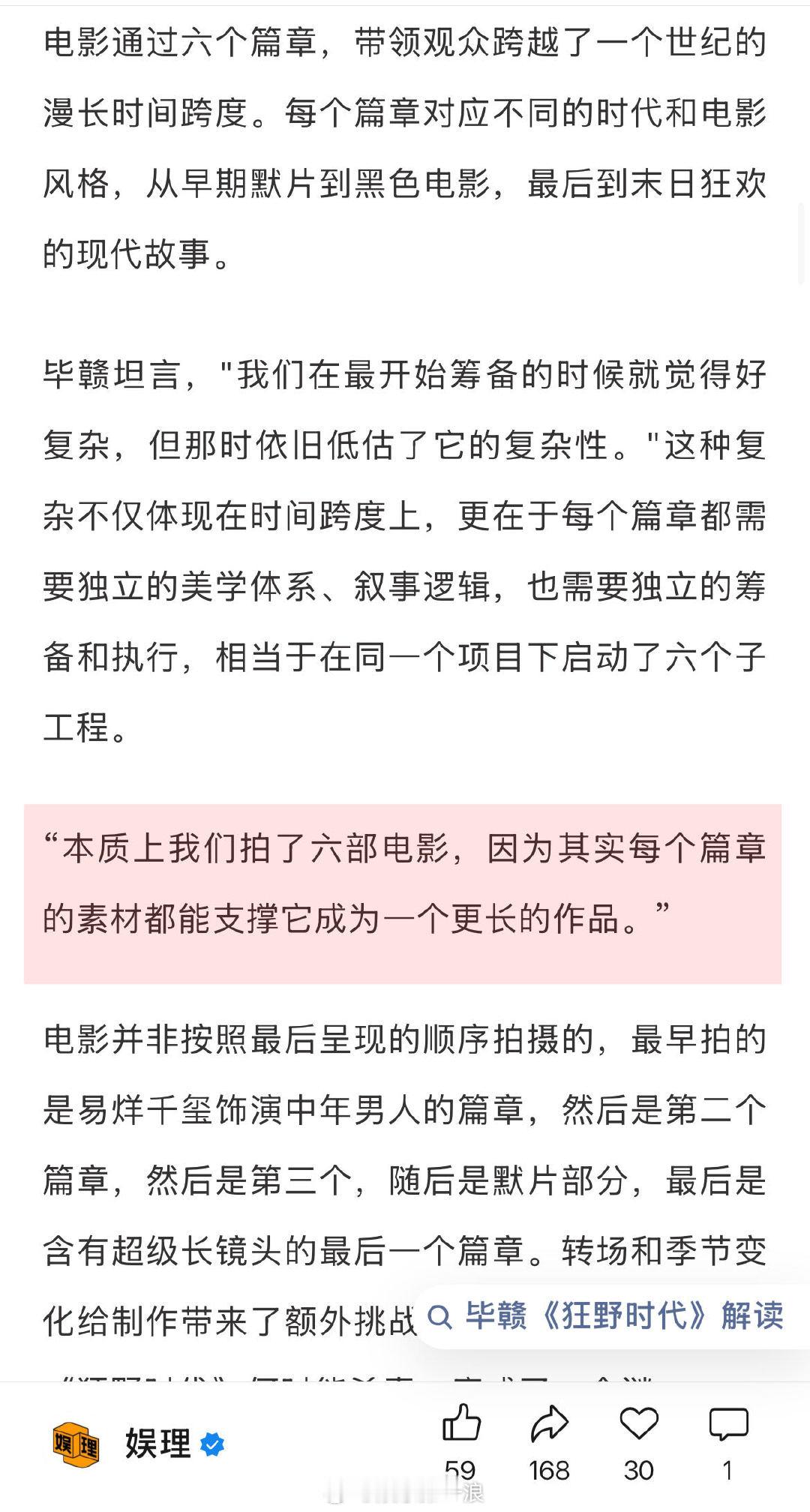 谈及《狂野时代》的六个篇章设定,毕赣坦言最开始筹备时就觉得好复杂。这种复杂不仅体现在时间跨度上,更在于每个篇章都需要独立的美学体系、叙事逻辑,也需要独立的筹备和执行,相当于在同一个项目下启动了六个子工程。“本质上我们拍了六部电影,因为其实每个篇章的素材都能支撑它成为一个更长的作品。”↓