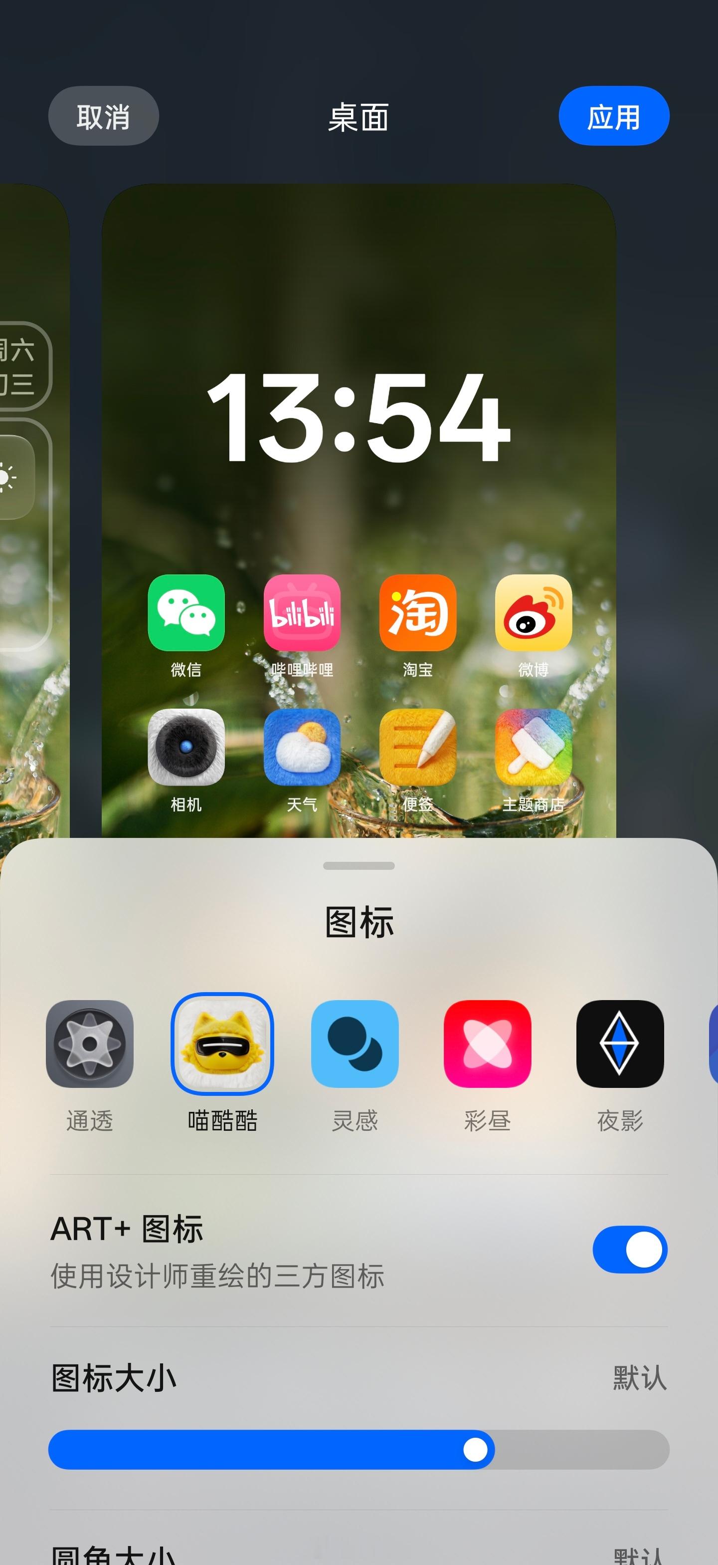 realme更新多了一套喵酷酷图标,毛绒绒的质感挺有意思,可惜第三方软件没有适配