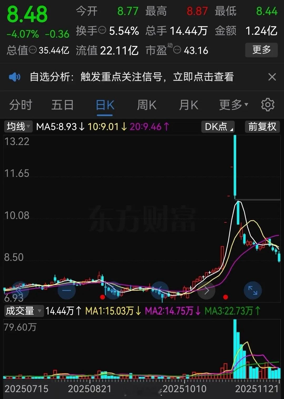 真狠,四个涨停后,连续崩盘式下跌!10月28日首个涨停后,又连续拉出三个一字板,散户想买买不进,急的是直流口水。11月3日涨停开盘后闪崩下跌,盘中上演天地板,收盘大跌8.90%,收出一根巨阴线,散户终于能进场了,结果进来就接盘,全剧终!此后开始一路崩盘式下跌,周五又下跌了4.07%,几乎跌回了起点。这走势真是堪比杀猪盘,让你千万富翁进去,“百万负翁”出来!