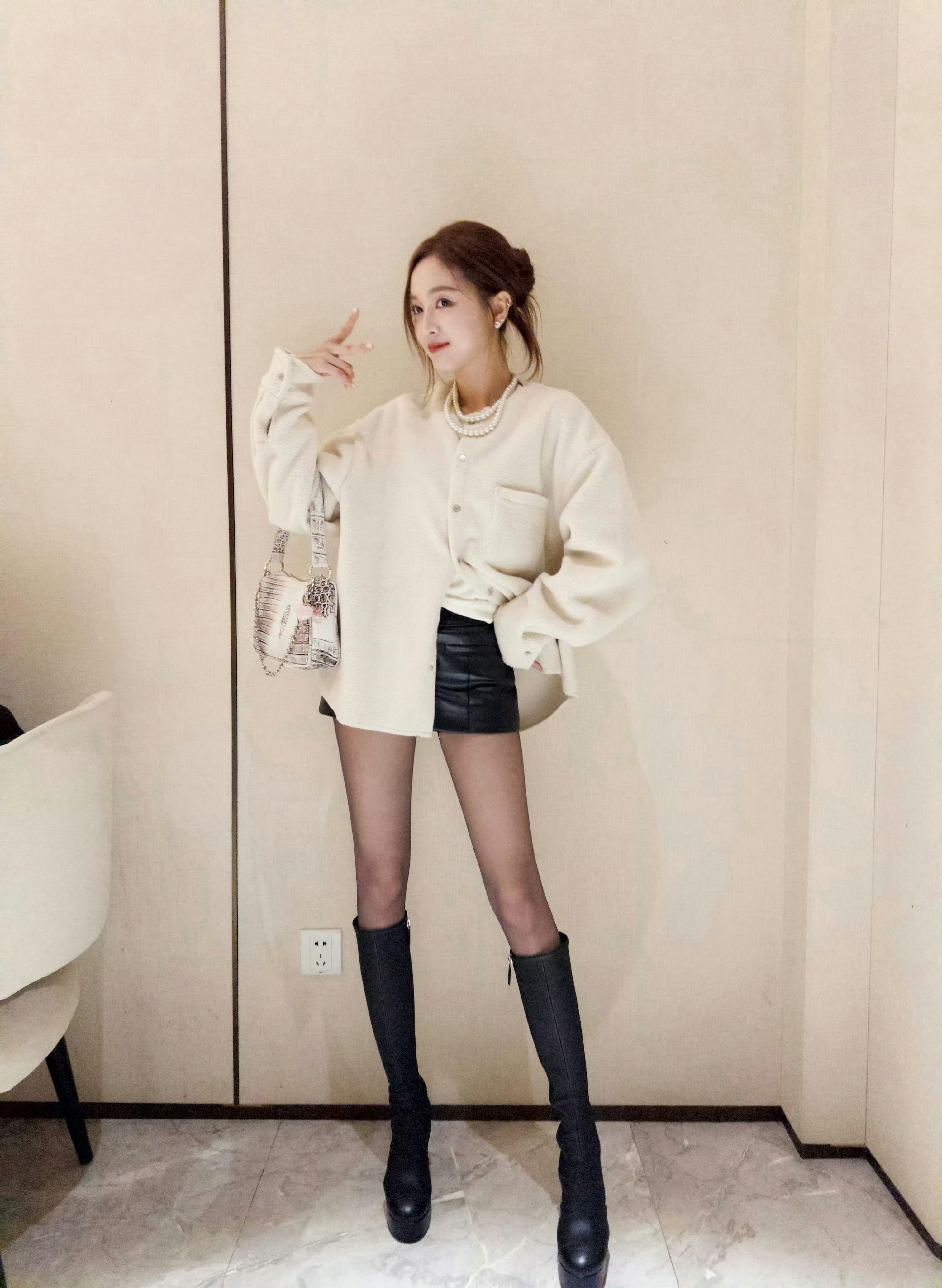 吴宣仪 x 黑丝长靴穿搭·太顶级了
