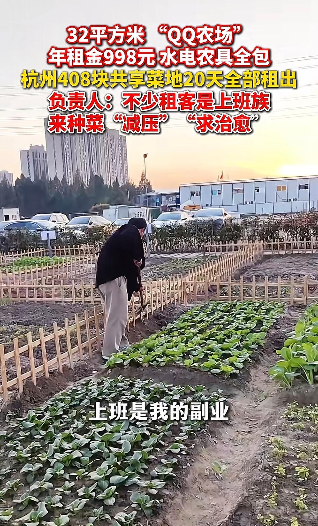 你想拥有一块属于自己的菜地吗,周末去浇浇水、施个肥,看到自己的菜一天天长大,不用去考虑其他的事情,周末可以去消磨时间,想想真的会乐在其中。对于城市人来说,不是所有人都有一楼带花园的,想拥有一块自己的菜地也是奢求,而杭州这位“地主”正好满足都市白领的需求,没想到一小块地年租金998元,竟然供不应求,一共408块地被抢购一空。现在农民有地累死累活挣不到什么钱,可是城里却无地可种,如果中间有个渠道连通农村与城市的互动,那才真是一举两得。私家菜地