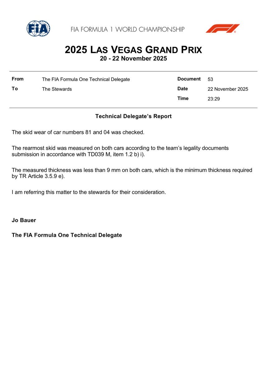 迈凯伦双车的底板木板磨损过度,被上报至赛事仲裁!按照过去的经验,这种情况可能会被取消比赛成绩!