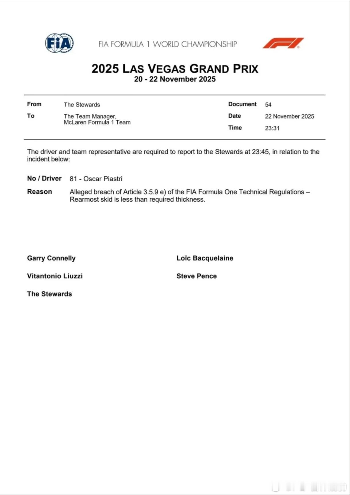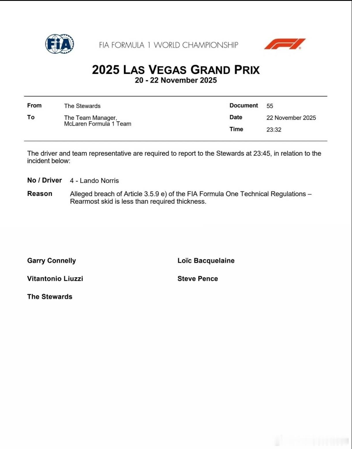 两台赛车的底板磨损过度,厚度低于《技术规则》规定的最小9毫米。正赛成绩被取消 (DSQ -Disqualification)最大赢家是红牛车队的马克斯·维斯塔潘,他凭借对手的失误,单站追回了大量积分,与榜首的差距大幅缩小,夺冠概率显著上升