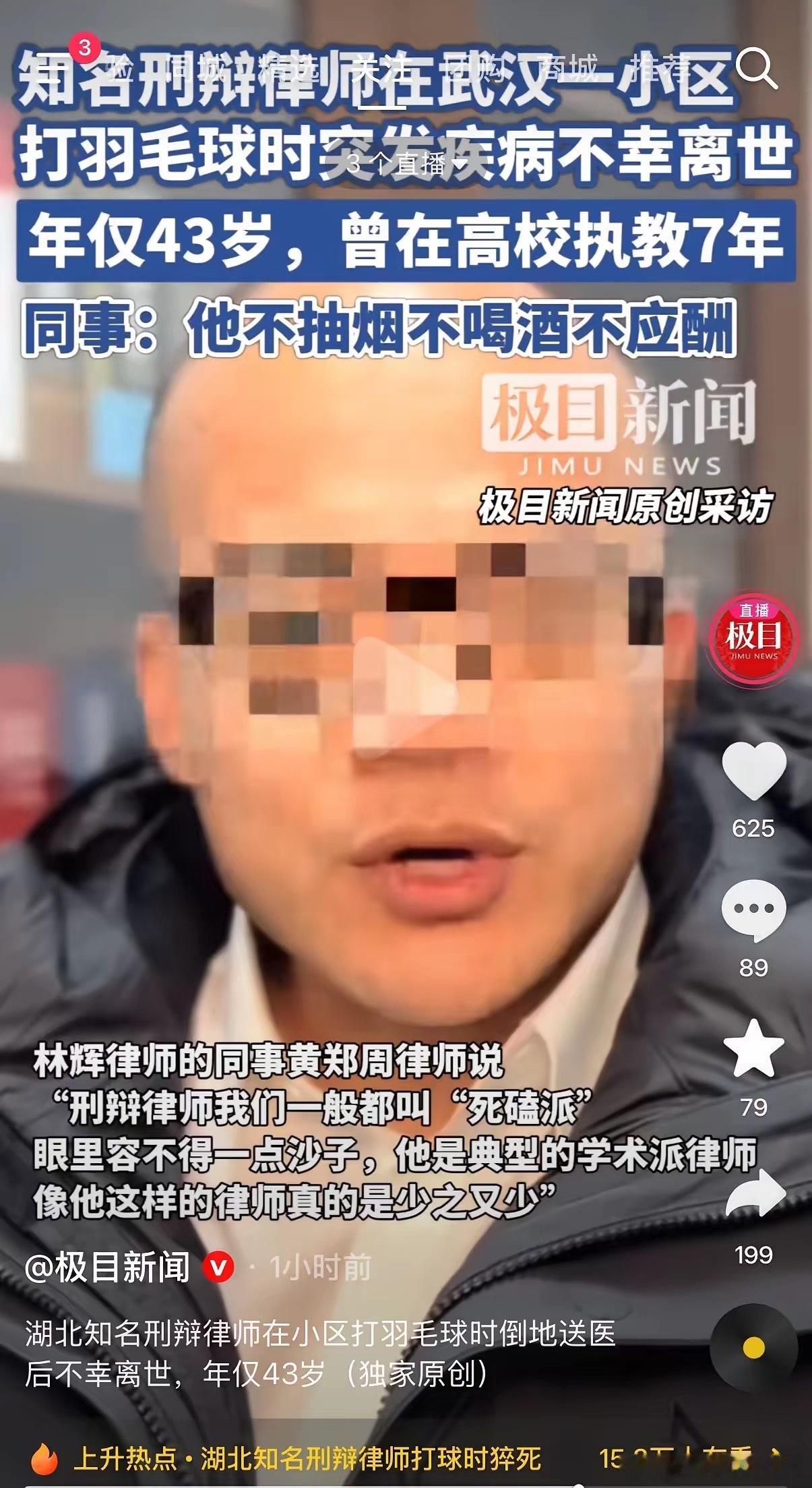 武汉一小区内,43岁的林辉律师倒在了羽毛球场上,再也没能起来。不抽烟、不喝酒、不应酬,年仅43岁,正值壮年,让人想不通的是,还是在打羽毛球这种健康运动中倒下的。可现实就是这么残酷,看到林律师的遭遇,我真的怕了,立马决定:不要以为不抽烟、不喝酒、不应酬,就没事了,定期检查比什么都重要要学会认怂,不要硬撑,人到中年,稳住心神,保重身体,才是对家人最大的负责!大家说对不对?