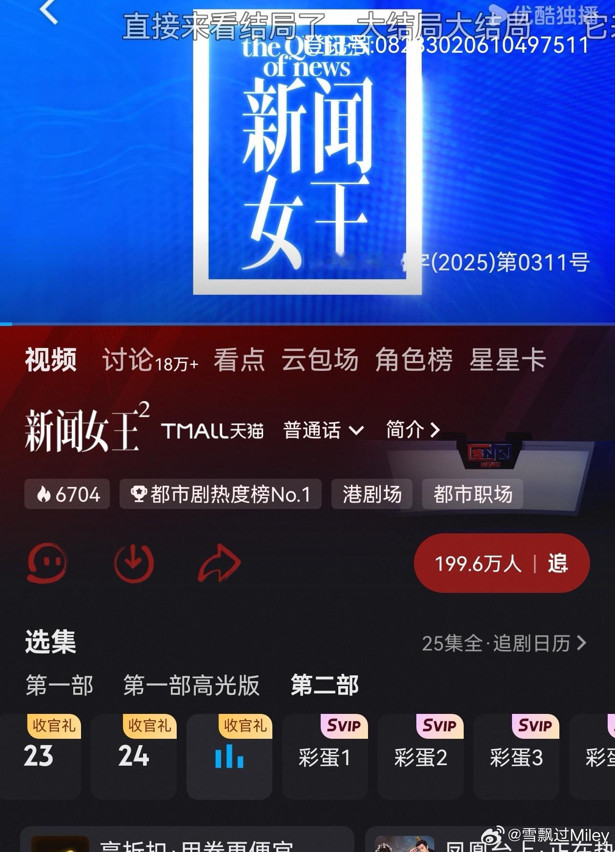 花18元解锁大结局,真是太喜欢看了,希望新闻女王一直能拍下去,讲的很多内容都紧跟时事。喜欢佘诗曼,新闻女王3赶紧拍起来。
