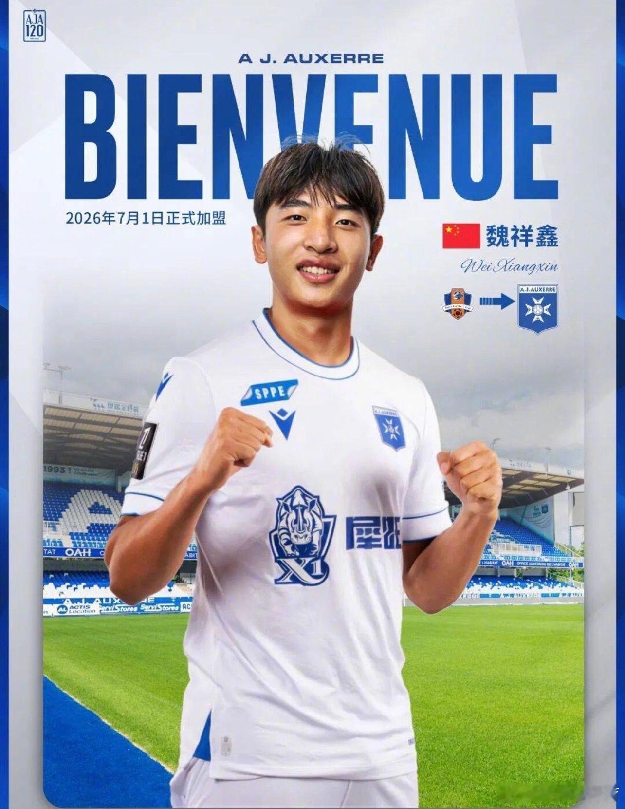 今日,法甲俱乐部欧塞尔官方宣布签下梅州客家年轻前锋魏祥鑫,中国男足官方随后发文,对这位17岁的小将表示祝贺。中国男足官方写道:欧塞尔足球俱乐部今日正式宣布,已与梅州客家足球俱乐部达成转会协议,中国新星魏祥鑫将在年满18岁后签订其个人合同,并于2026年7月1日起正式加盟球队。魏祥鑫是中国U-18国家男子足球队的重要一员。祝愿他未来在法甲的舞台上经受淬炼,提升能力,也期待他以后为中国足球贡献更多力量。