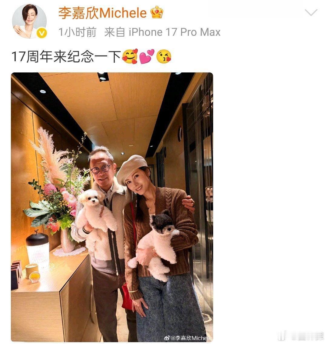豪门阔太李嘉欣庆祝17周年结婚纪念