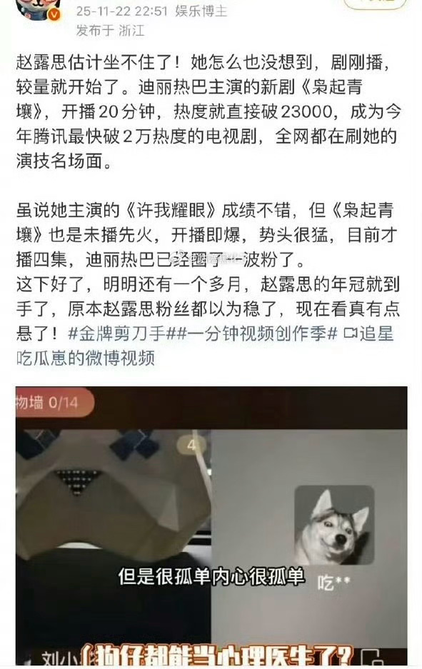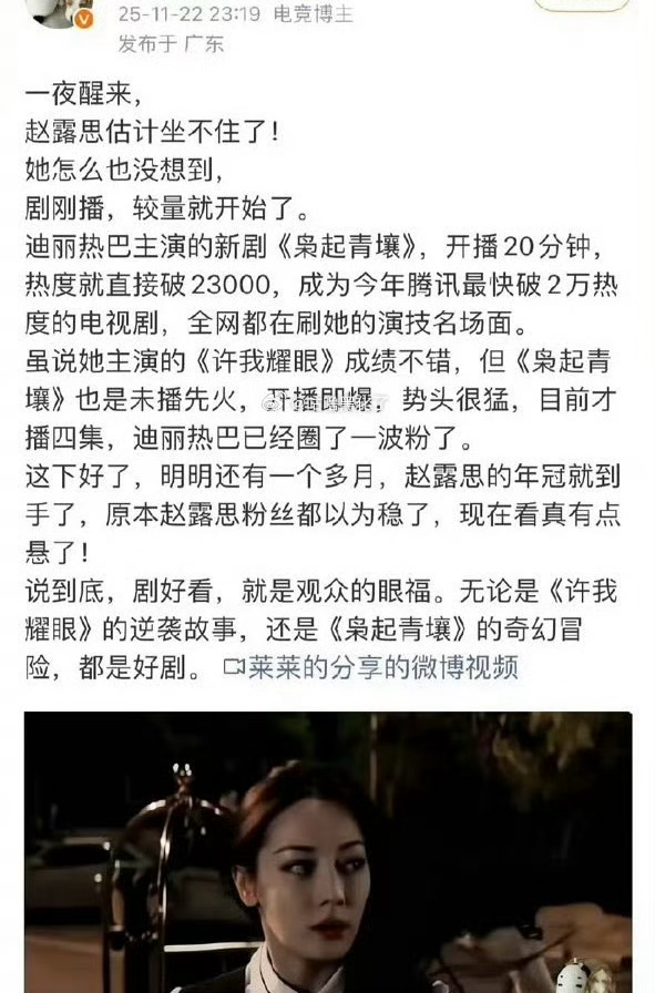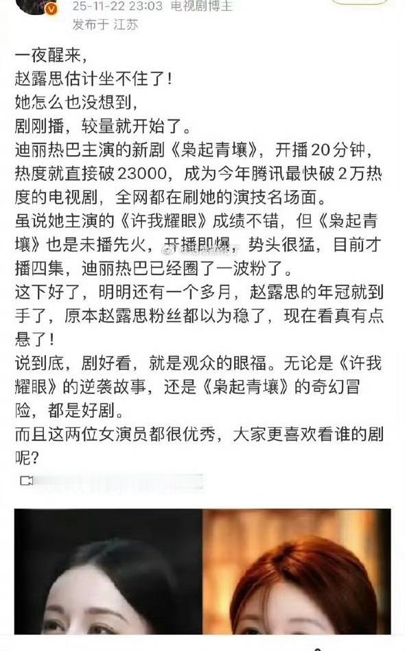 迪丽热巴的剧,为什么那么多人说赵露思坐不住了?而且文案都差不多!