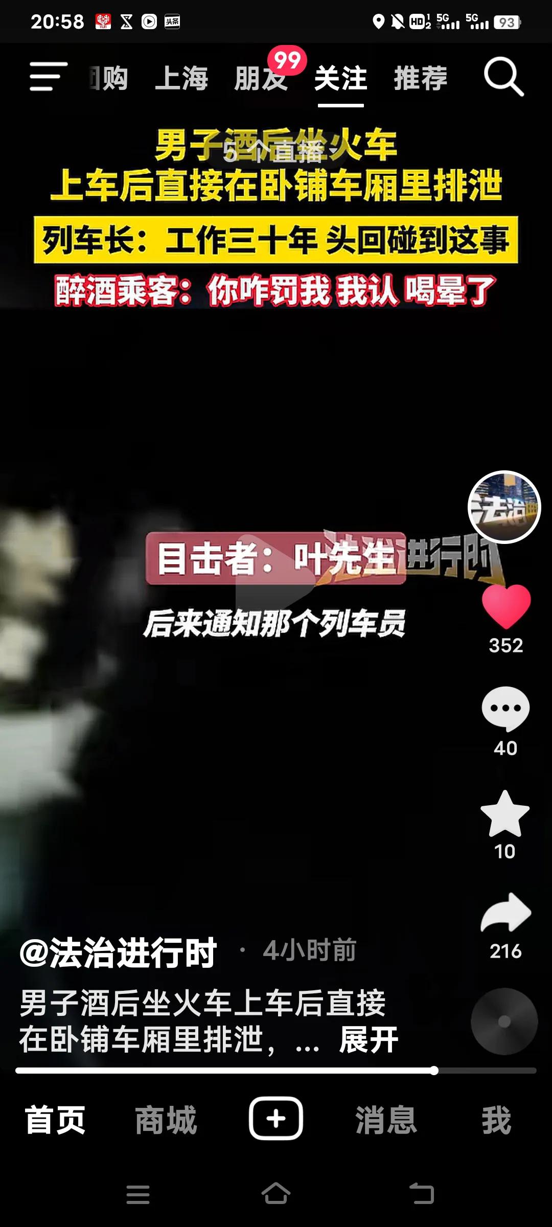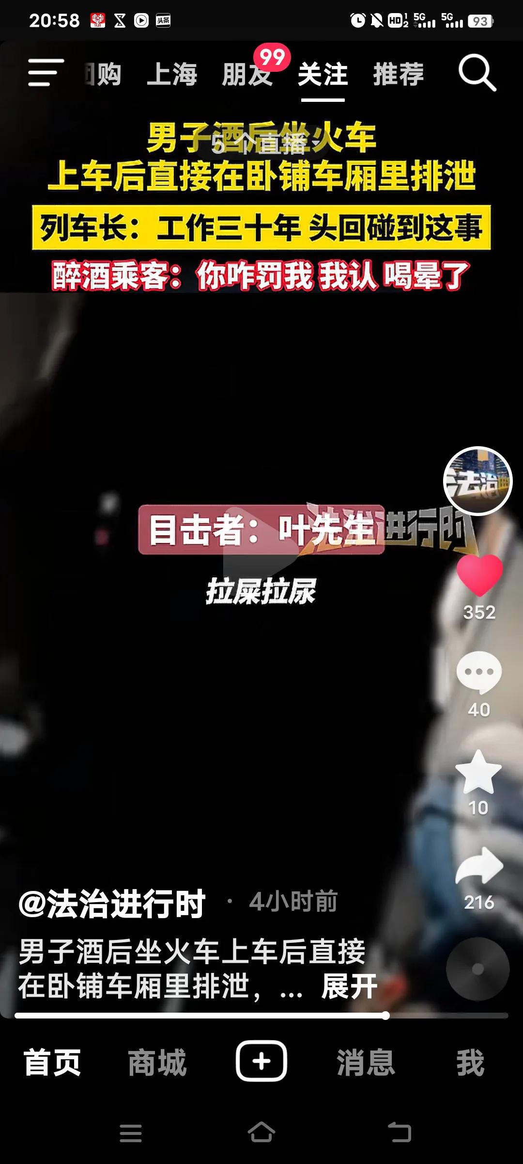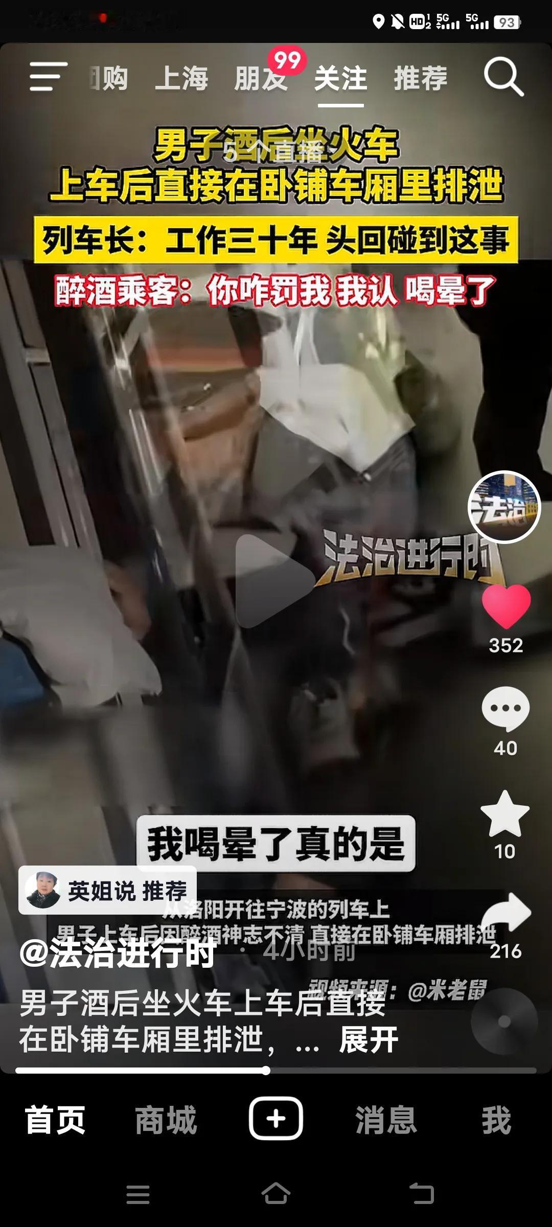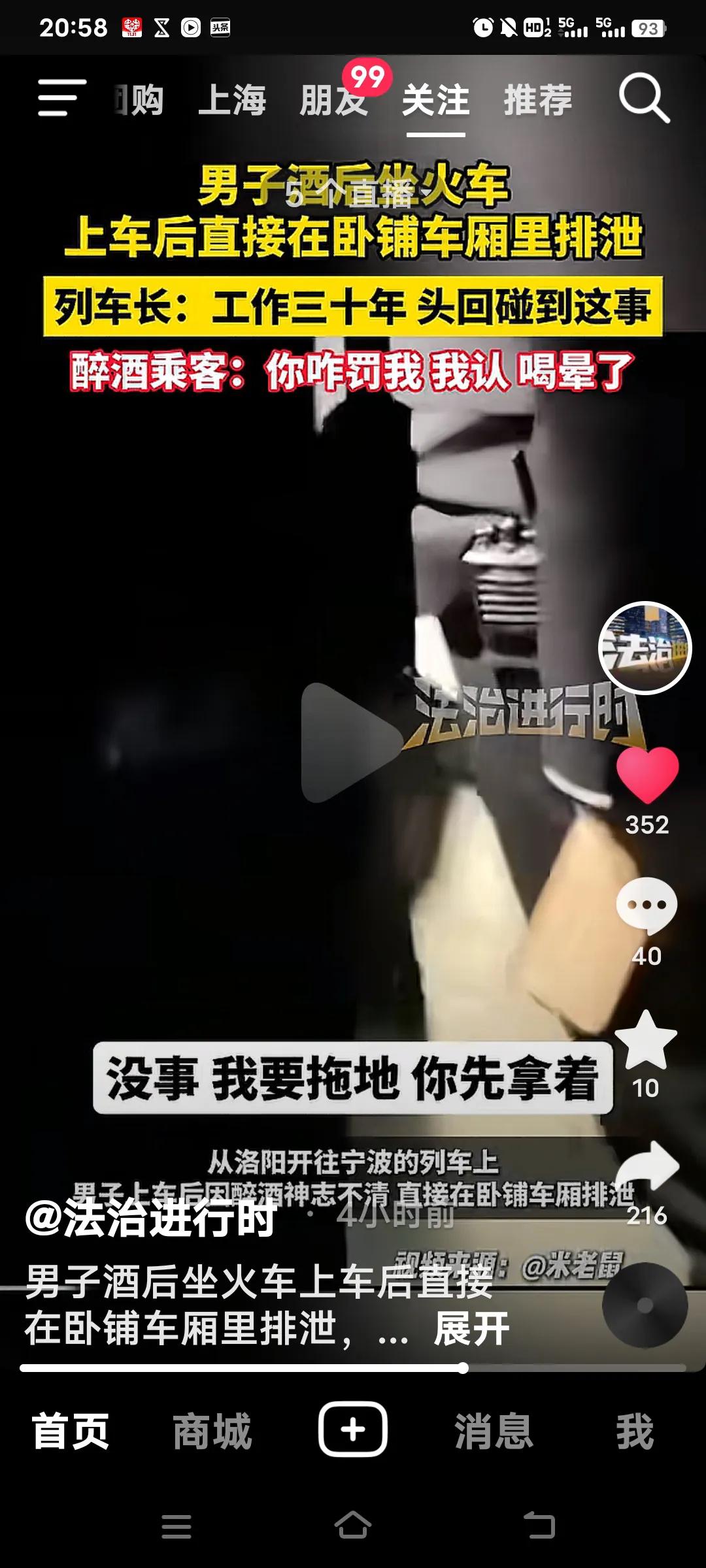 11月22日深夜,K168次列车正从河南洛阳驶往浙江宁波。当列车停靠在南阳站附近时,一件奇葩事发生了。一名男子饮酒过量,神志不清,竟直接在卧铺车厢里大小便。 据目击者叶先生描述,该男子在车厢里又拉又尿,周边乘客的鞋子和箱子都未能幸免。事后经过协商,他应该对受影响的乘客进行了赔偿。画面中,车厢已经熄灯,乘客们都在休息,过道里却出现了排泄物,列车工作人员赶忙前来处理,还让当事旅客用纸将排泄物捡起,丢进厕所。 列车长也十分震惊,称自己工作三十年,还是头一回碰到这种事。好在到了23日下午,工作人员表示双方已协商解决此事,且双方对结果都很满意。醉酒乘客解释道:“我真的是喝多了,你们怎么罚我都认,当时喝晕了!” 这件事着实令人糟心。看来喝酒还是要有个度,否则很容易给他人造成影响。 t57次列车 Z287次列车 Z137次列车