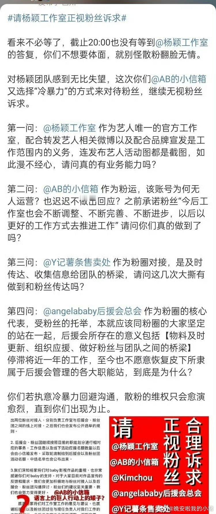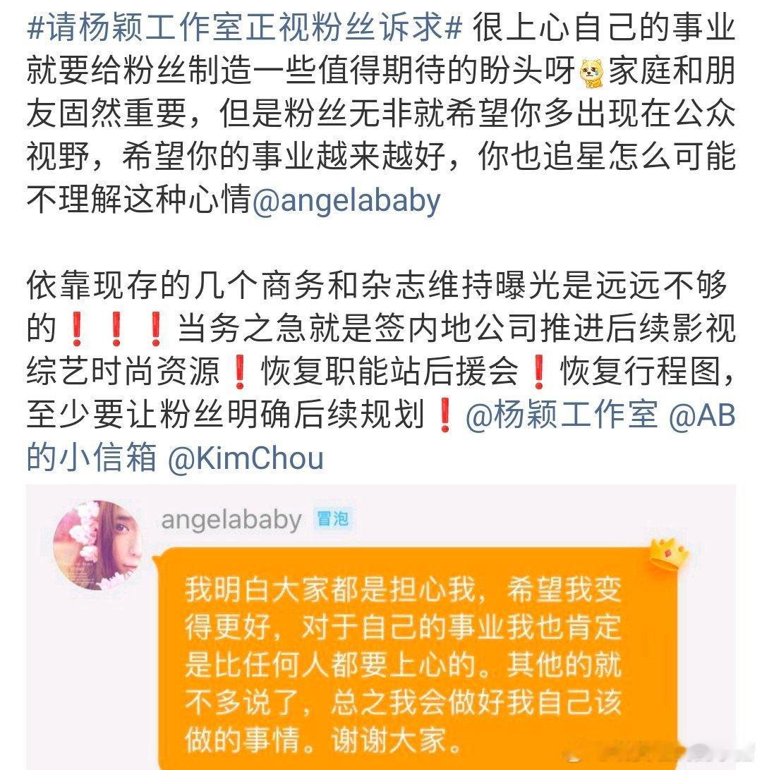 Angelababy 粉丝发长文喊话工作室,要求正视粉丝诉求