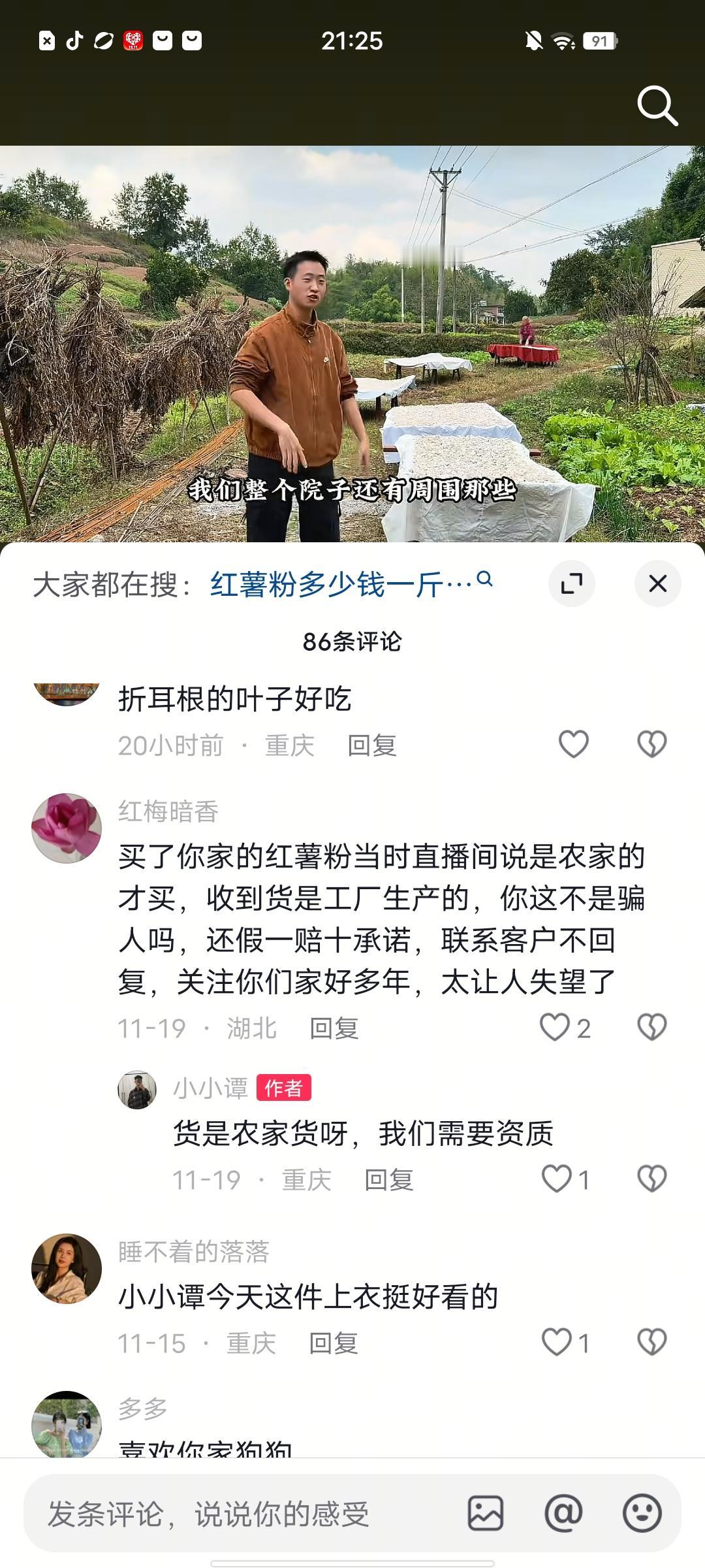 渝乡桃子:小小谭终于不忍了,首次回应红薯粉问题。 看了小小谭的视频总感觉他就是三心两意,今天做这个,明天做这个,他父母看到他这样也不好说什么,只能出去工作,其实按他们都有几十万粉丝了,父母根本不用出去工作,其实还是小小谭不懂事,更有粉丝表示:买了你家的红薯粉当时直播间说是农家的才买,收到货是工厂生产的,你这不是骗人吗,还假一赔十承诺,联系客户不回复,关注你们家好多年,太让人失望了,而小小谭回应货是农家货呀,我们需要资质,其实他说得也有道理,虽说他卖东西有点贵,不敢卖假货吧。现在大家都盯着这么严……