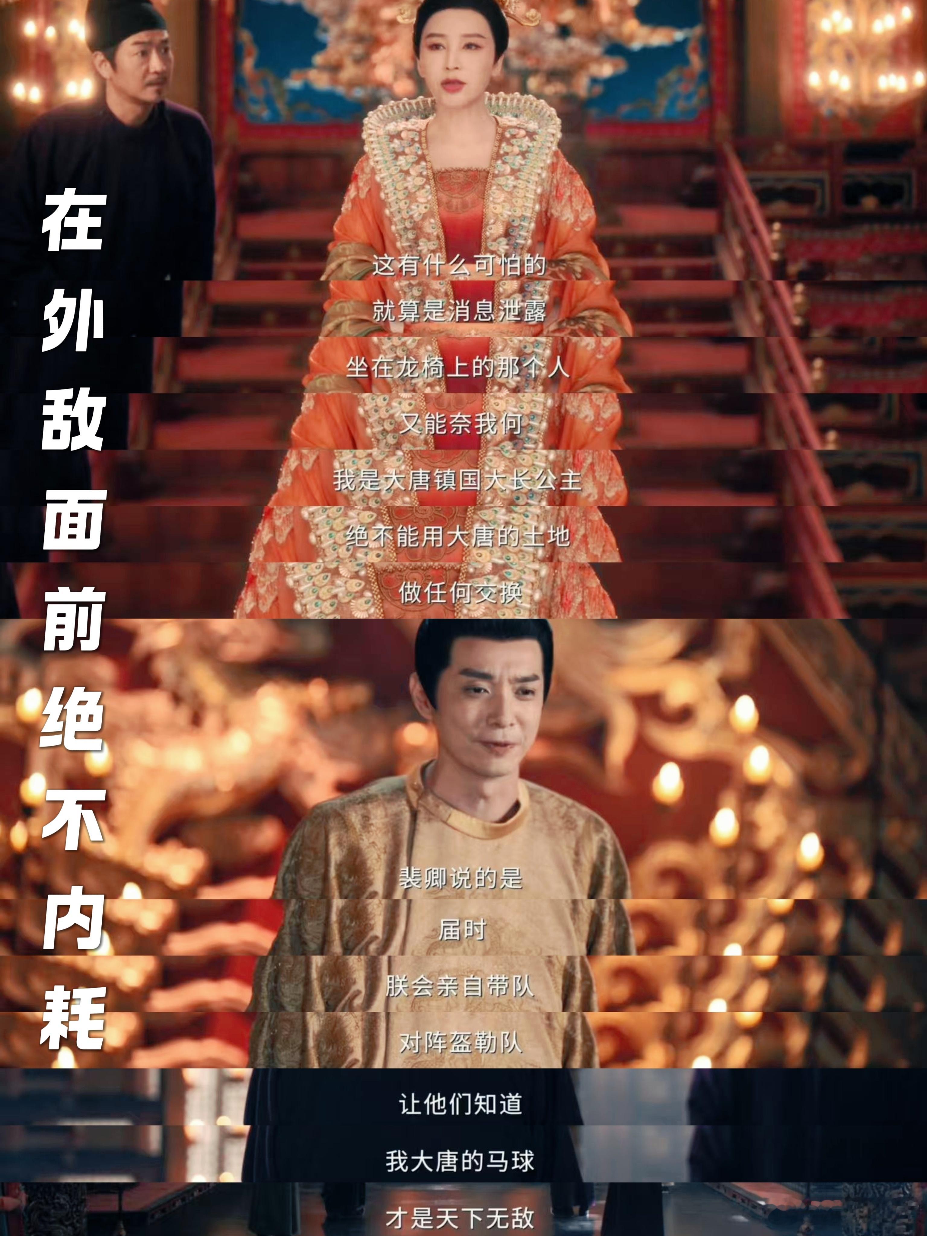 3这段剧情看得热血沸腾,马球场暗藏的杀机,盔勒人的阴谋诡计,都挡不住众人守护大唐的决心,长公主牵头传递信息,众人放下恩怨共抗外患,国本为重的信念从不开玩笑