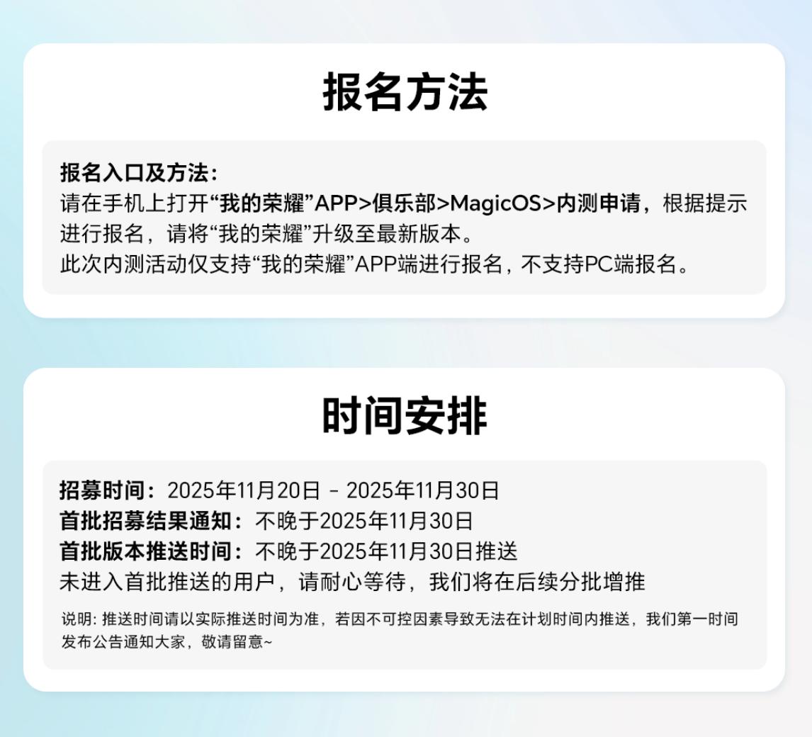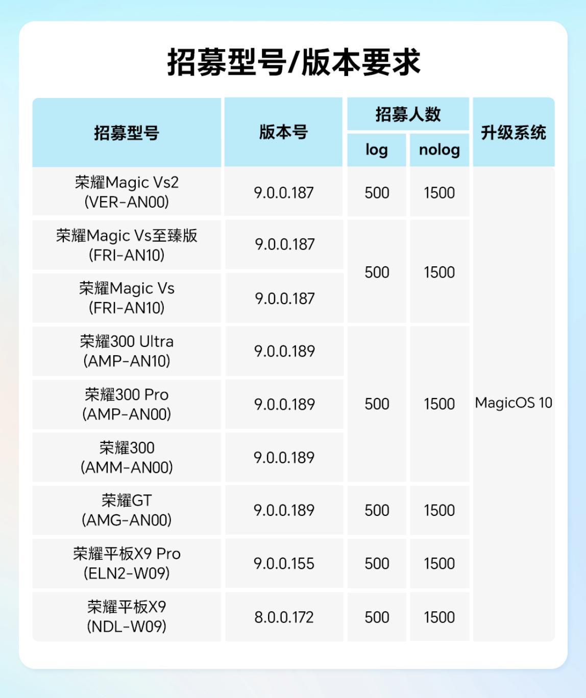 荣耀MagicOS10第五批内测机型开始招募了,有如下机型的,可以去申请了,MagicOS10真的好用,特别是通透设计,真的太好看了。 机型分别是:荣耀Magic Vs2、荣耀Magic Vs系列、荣耀300系列、荣耀GT、荣耀平板X9系列。