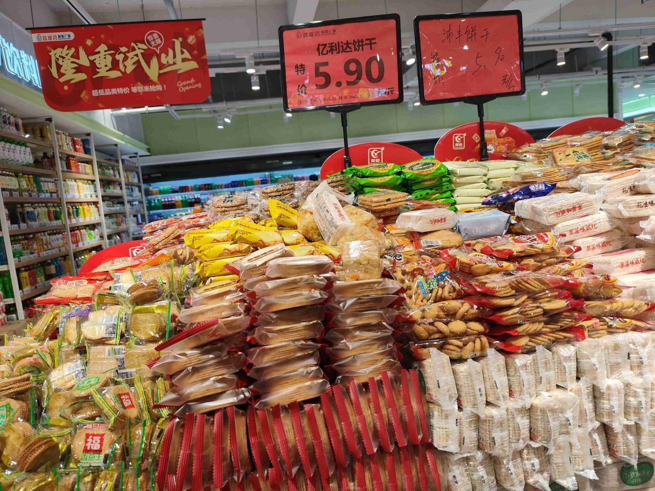 我的今日状态:😁轻松愉快 我这里的天气:☀️晴天 11月23日晚,开业七天的南波湾广场还有这么便宜的饼干——5.9/斤,全款,咱买了13元的。