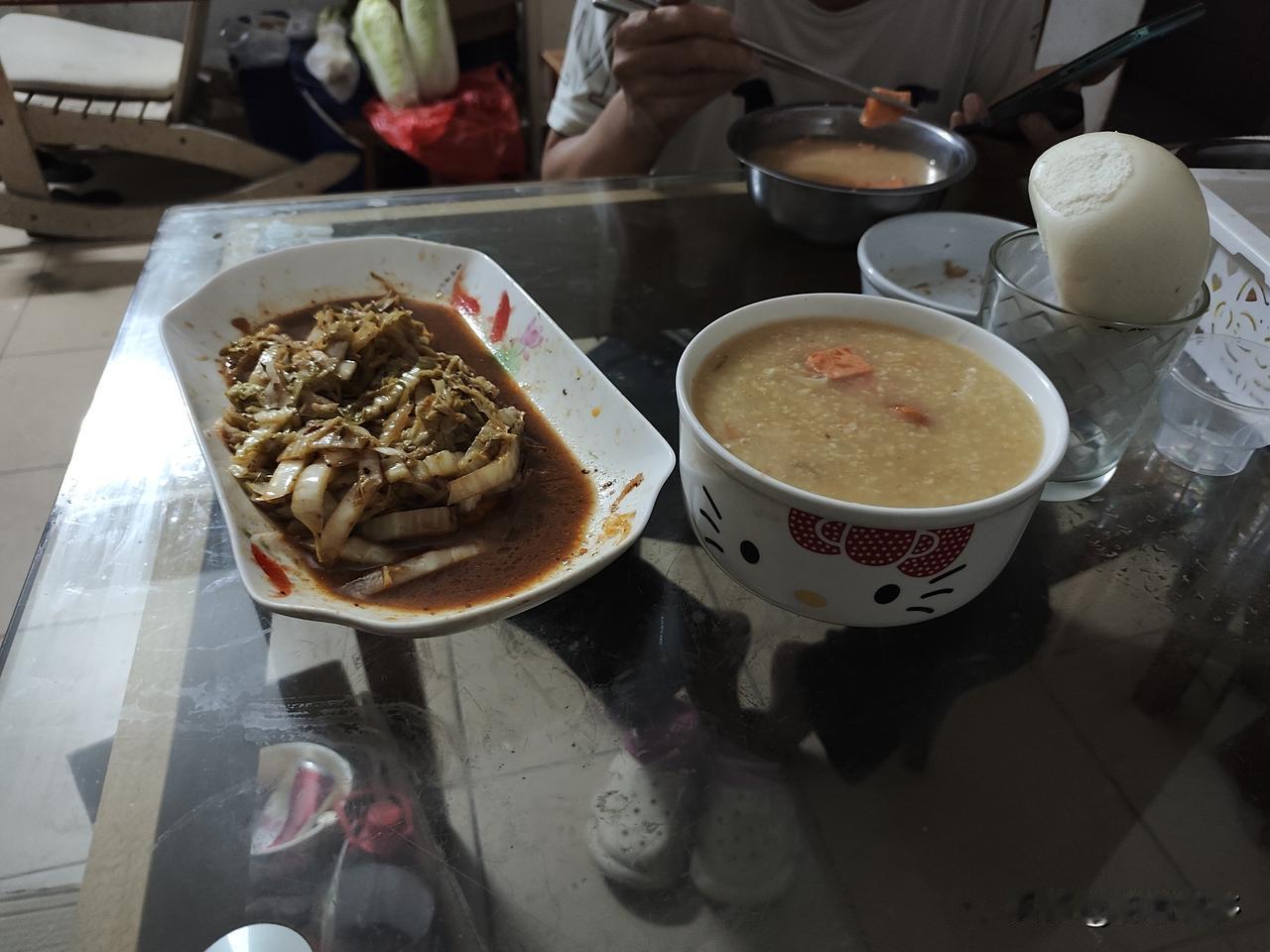 晒图笔记大赛11月23日,星期天,上班八小时晚上不加班。中午吃馒头,炒的莲菜。晚上,玉米糊糊就酸辣白菜。